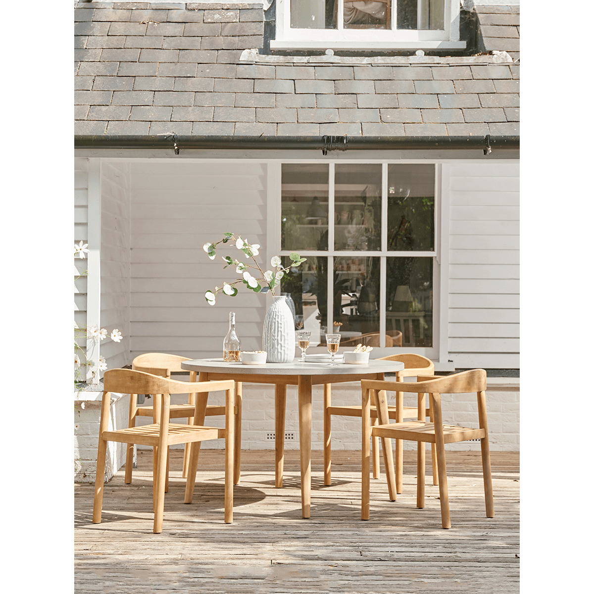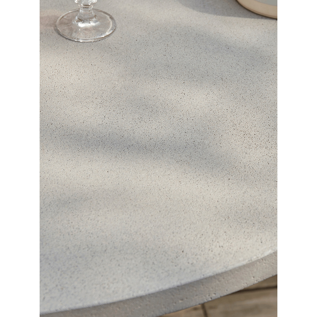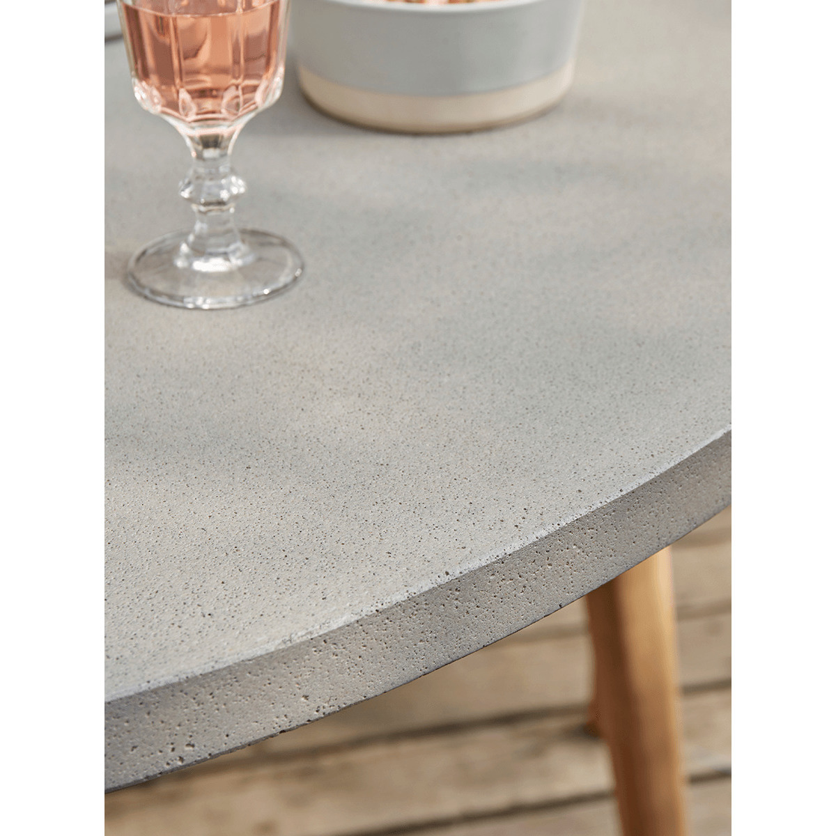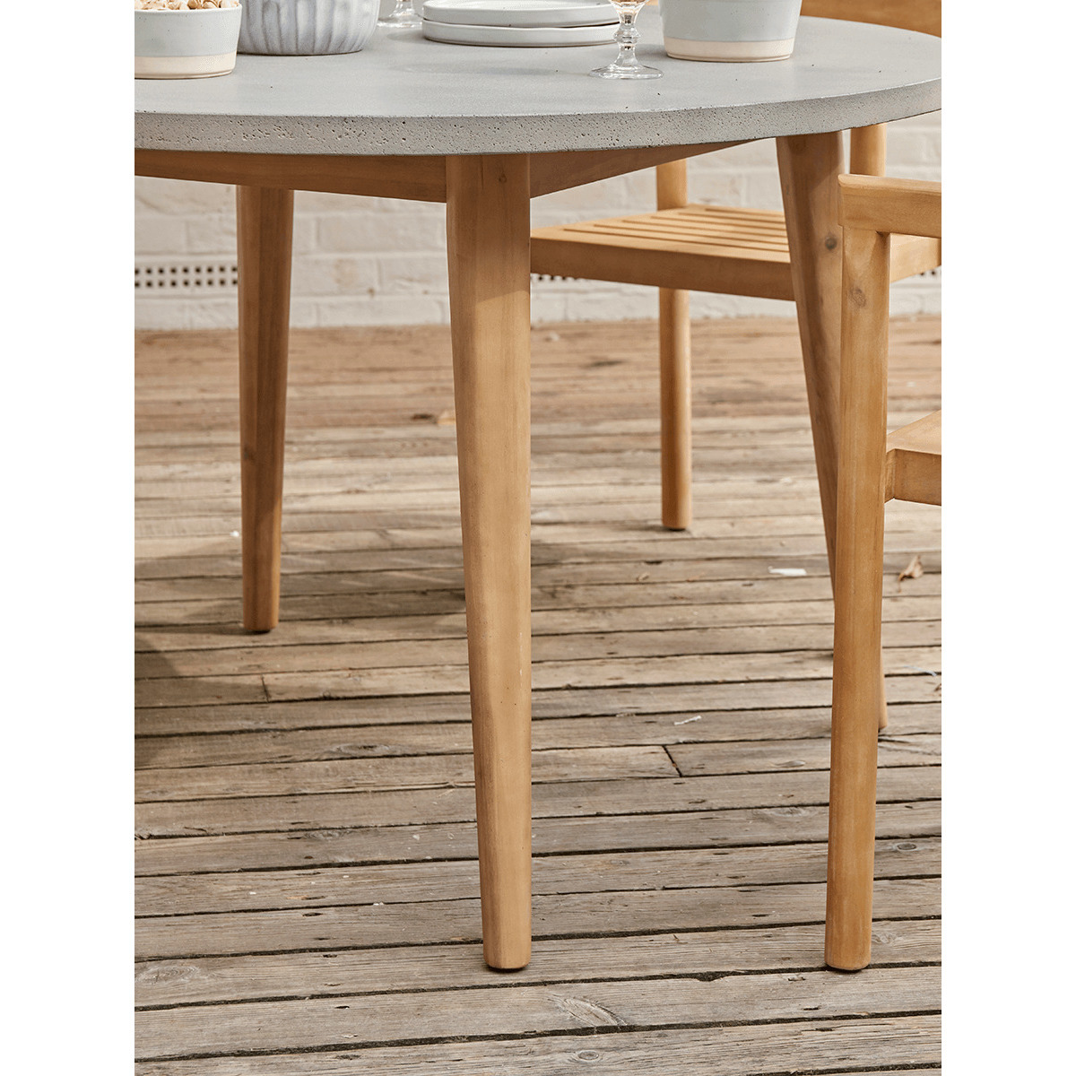 A versatile indoor outdoor table, one that can serve a number of chairs with its round aspect and complement most styles by design. A muted, contemporary concrete look top is crafted from polystone, and acacia wood legs are treated to withstand the showers. Our Indoor Outdoor furniture is designed to be used wherever you might need it, inside in the dining room or outside in the garden. Find the perfect dining chairs for your table with our Faux Rattan Chair. Click here to view our useful Outdoor Furniture Buying Guide.