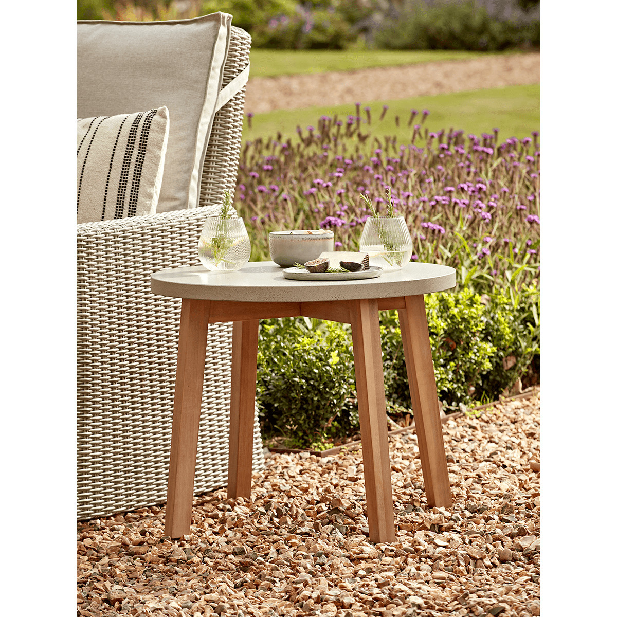Please accept our apologies, this was a much loved item, and is sold out until next Spring!The perfect place to rest your drinks, snacks and books when spending time outdoors, our petite side table can be used both inside and out. Each has a rosy acacia wood frame with a rustic concrete look top for style and durability.