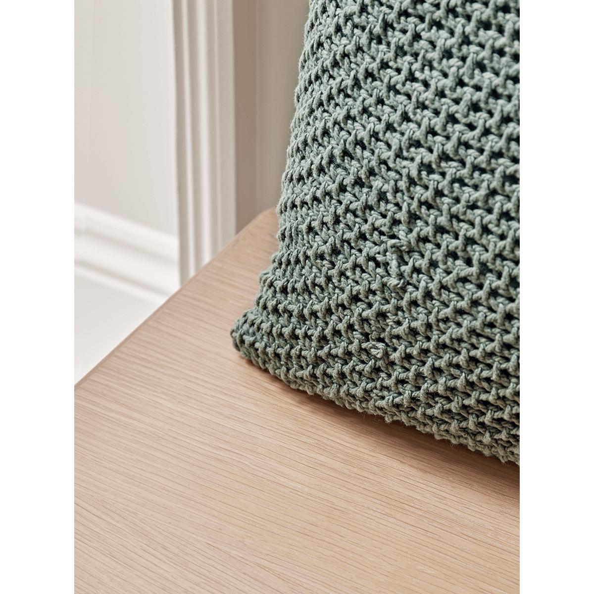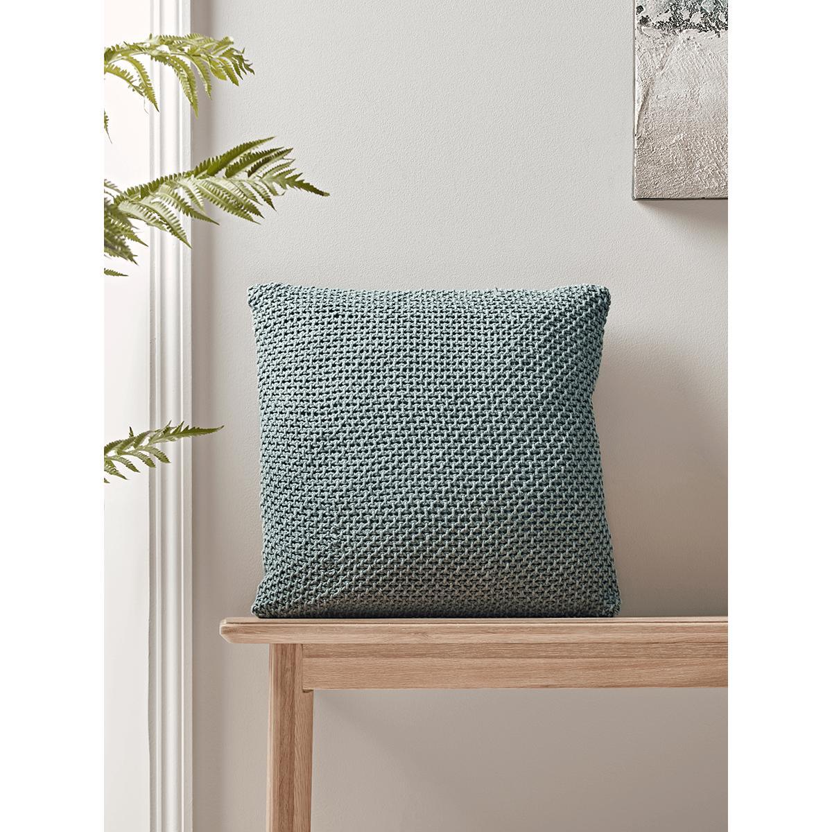 Wholesome and homely, our Knitted Cotton Cushion is ideal for softening a relaxed interior and looks great alongside wooden furniture and house plants. Snuggle up with this cosy little gem on the sofa or use as a decorative scatter cushion on a piece of plain furniture to create a warm, laid back feel. Also available in. Blue.