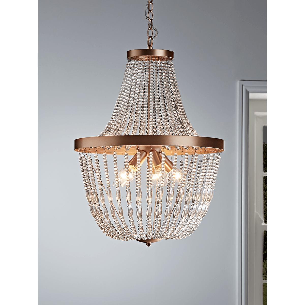 Uncompromisingly fabulous and classically elegant, our Layered Droplet Chandelier brings with it a dimension of glamour that will pervade an entire room. Enjoy the way light bounces off the rosy gold frame and is refracted through the glass beads for a shimmering, bejewelled look that will instantly transform your living space. Discover how to create the perfect lighting scheme for your home using our.