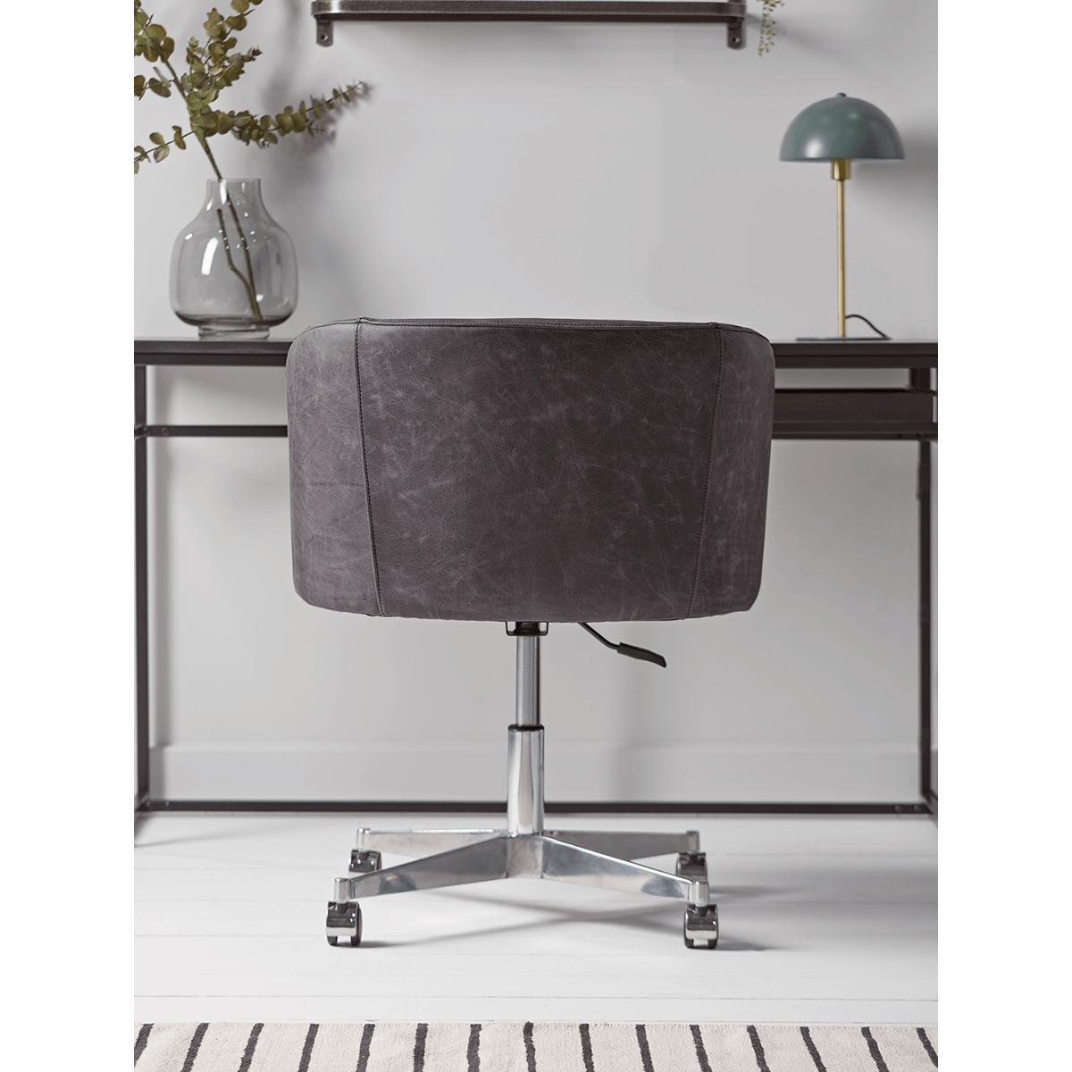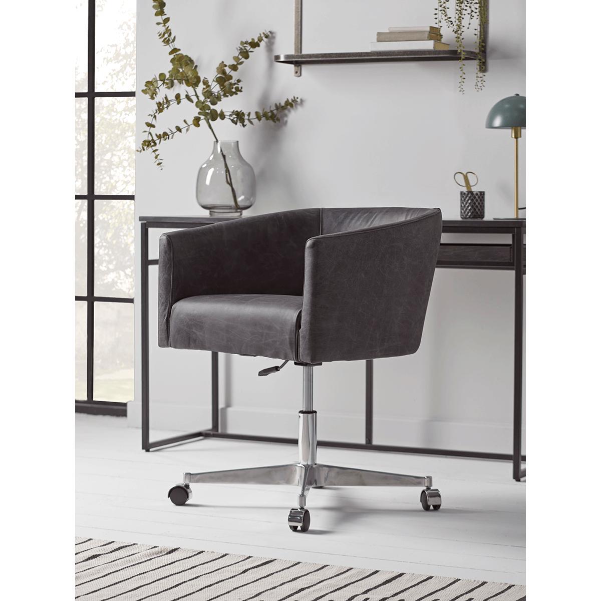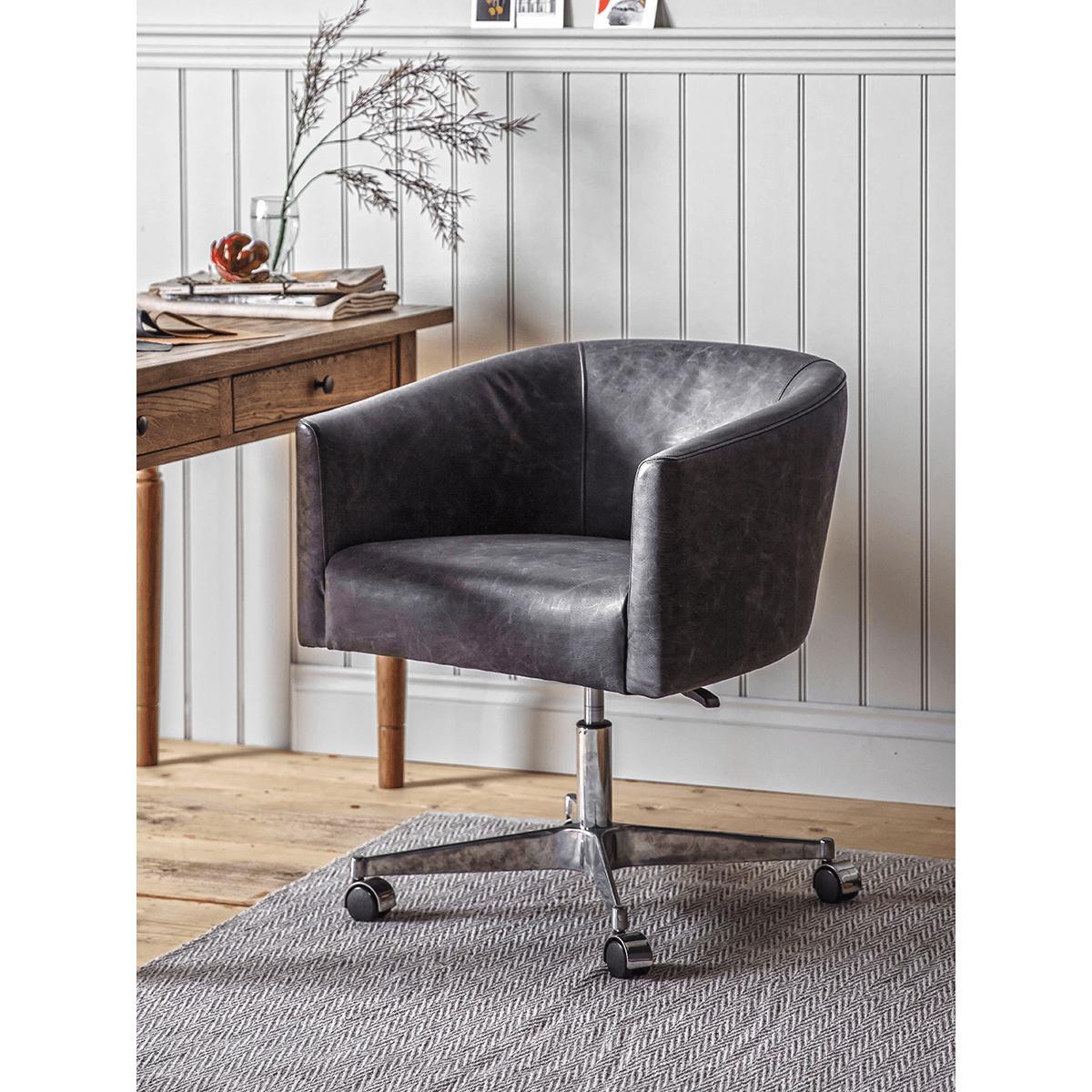 I really like this leather wheeled tub chair - it’s a versatile piece that works well in both modern and vintage-inspired interiors. The black leather gives it a timeless and sophisticated look, making it perfect for adding a touch of elegance to a home office or study. It’s practical too, with its wheeled base allowing easy mobility, which is great for flexible working setups. To style it effectively, consider pairing it with contrasting textures like a soft wool throw or a patterned cushion to soften its sleek look. It also works well with industrial-chic or minimalist decor, especially when paired with metal and wood accents. Overall, it’s a functional yet stylish addition that lends a professional yet cosy feel to any workspace.