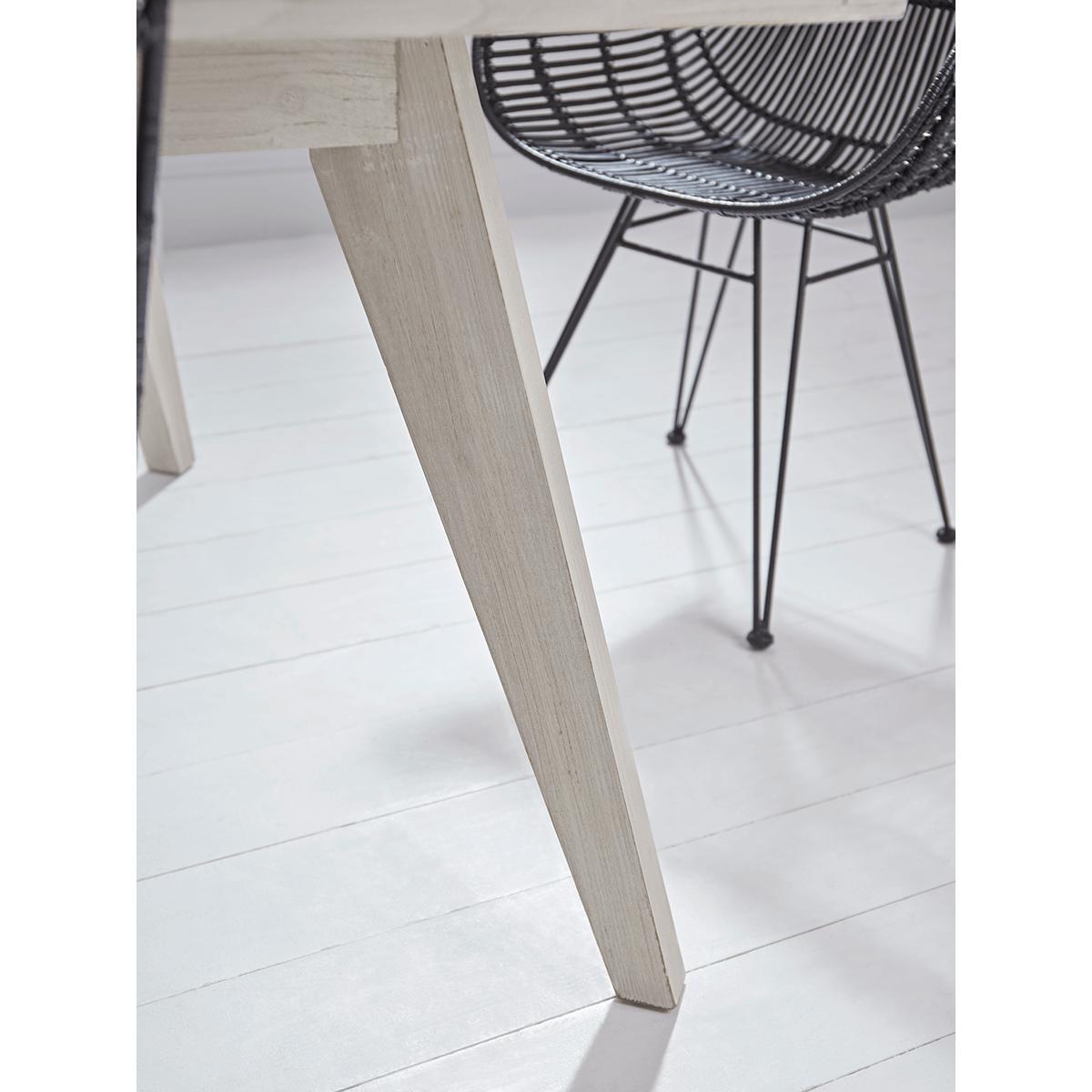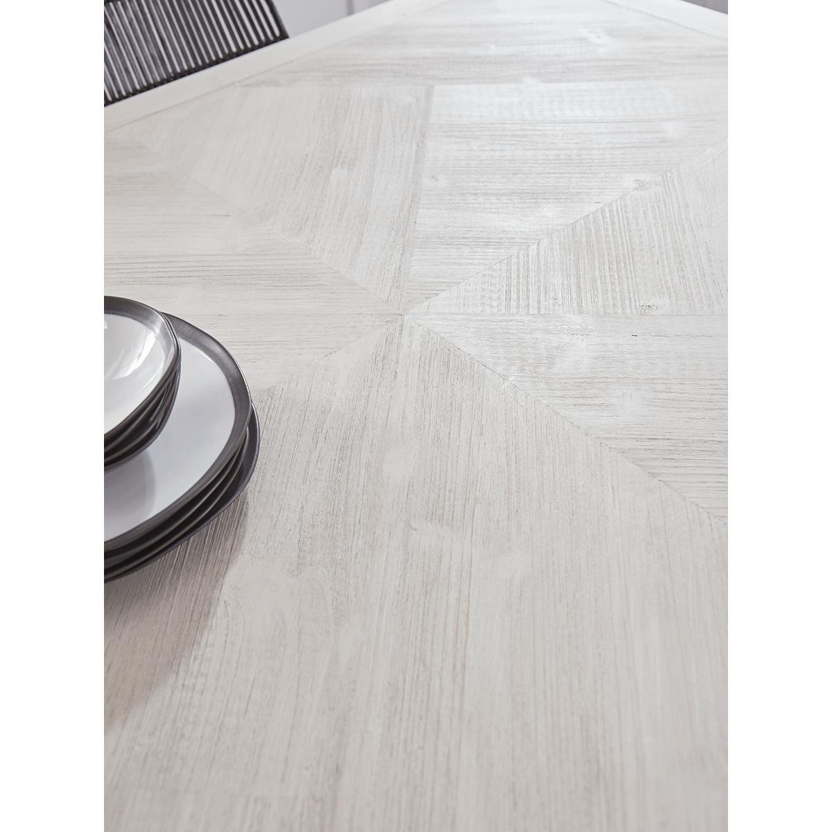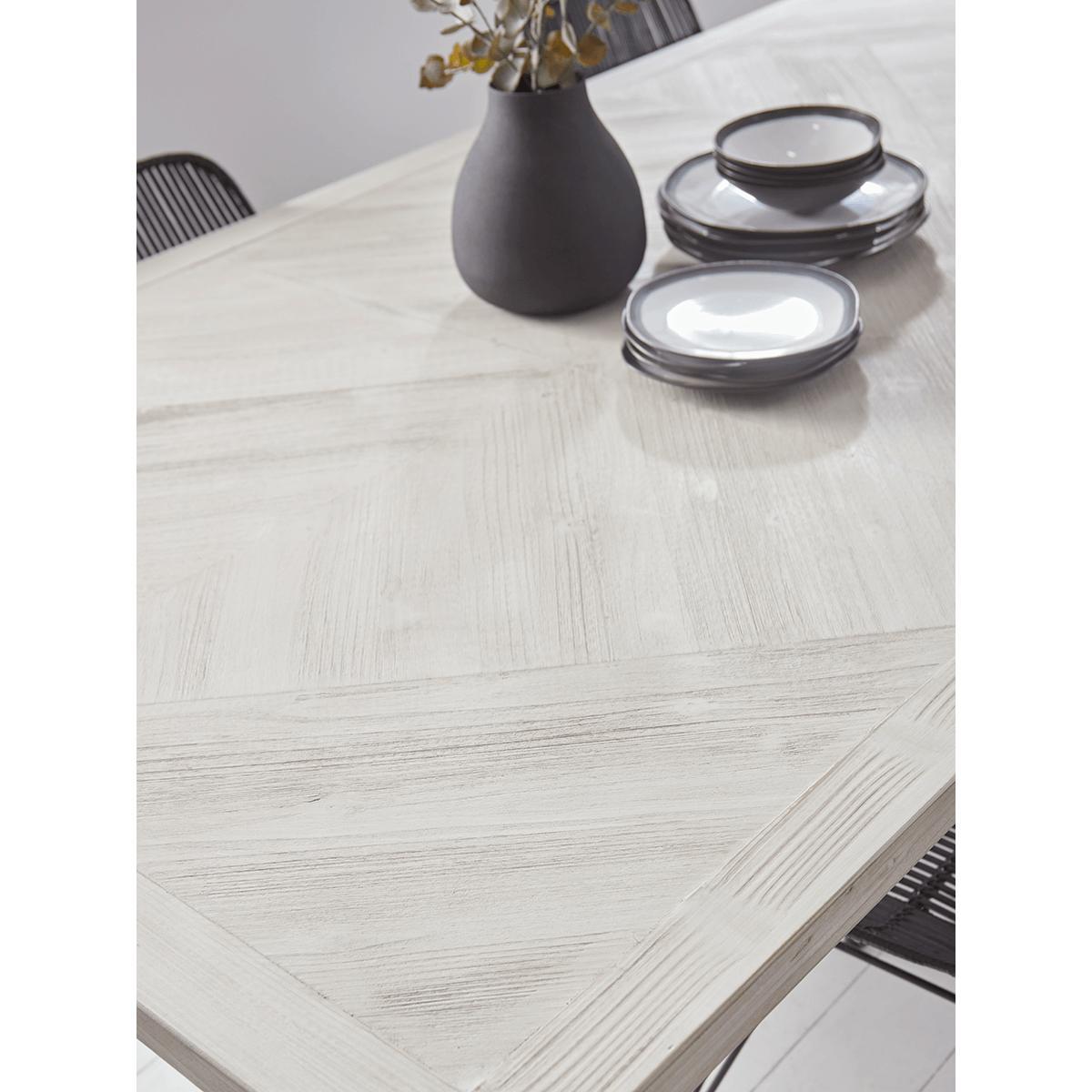 Our Limewashed Parquet Dining Table is a true celebration of the natural beauty of wood. Its simple outline focuses all the attention on the stunning texture and visual appeal of the chevron patterned top. Made of fir, with a light limewashed veneer, this elegant table will lift the atmosphere in any kitchen or dining room. We’ve styled it with our. Flat Rattan Dining Chair. In black, for contrast.