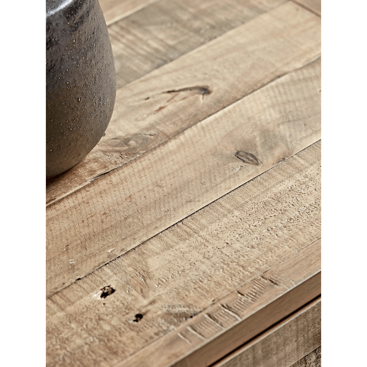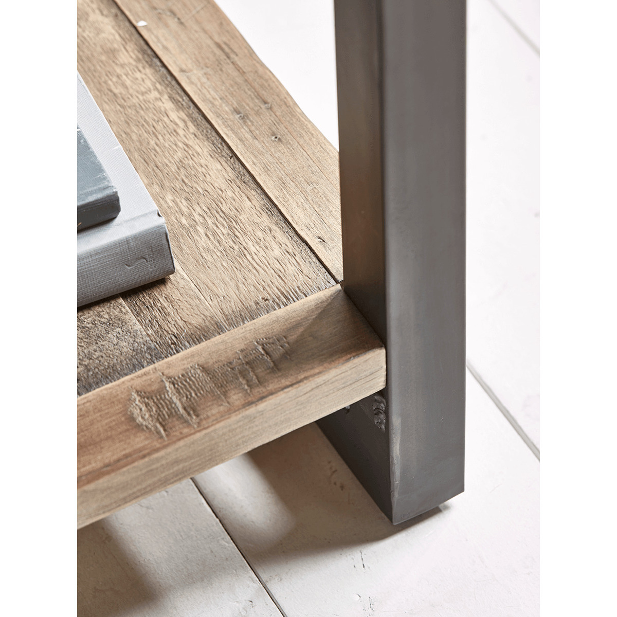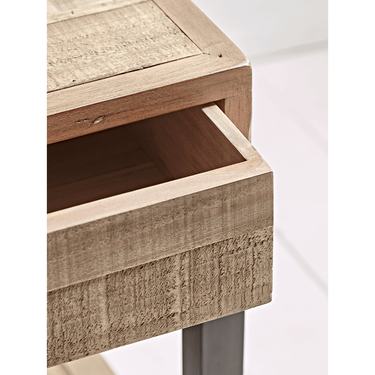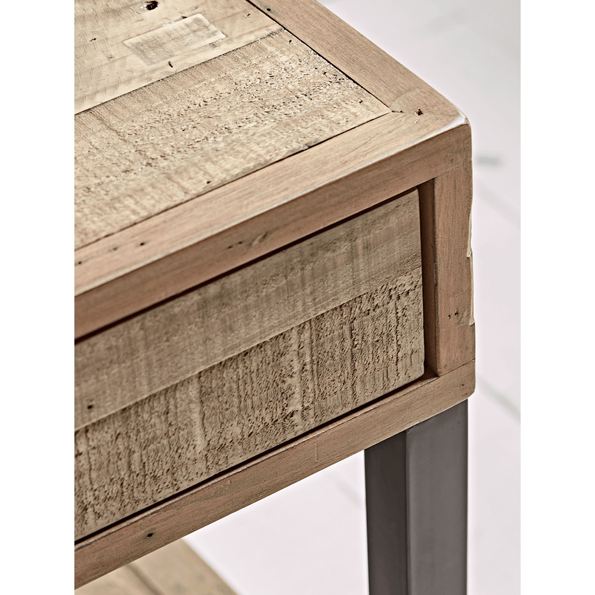 The top of our Loft Side Table is crafted in solid wood, encased in a frame for a tactile smooth edge. The wood is carefully aged with character details for a reclaimed look, and no two pieces are the same. With rich toned metal frame legs, add a contemporary punch beside a chair in your living room, on beside your bed - a handy additional surface inspired by repurposed industrial design.