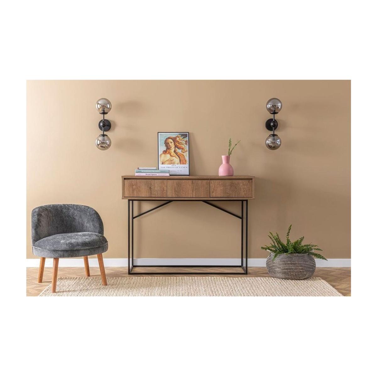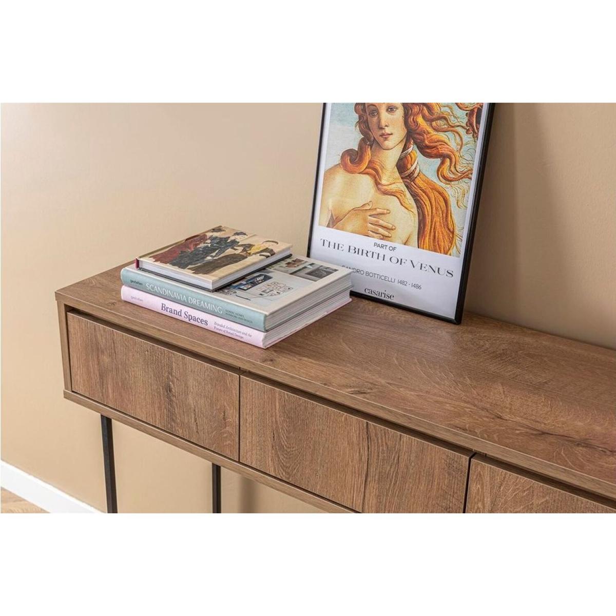 Enhance the entryway of your small home or apartment with this minimalist console table that will allow you to showcase the beauty of your decor thanks to ample surface space. Finished in a light wood colour, this black metal legs hallway table can match any decor style with its appealing design. It is perfect for any decorations and accessories such as your books, glasses, photo frames and plants.