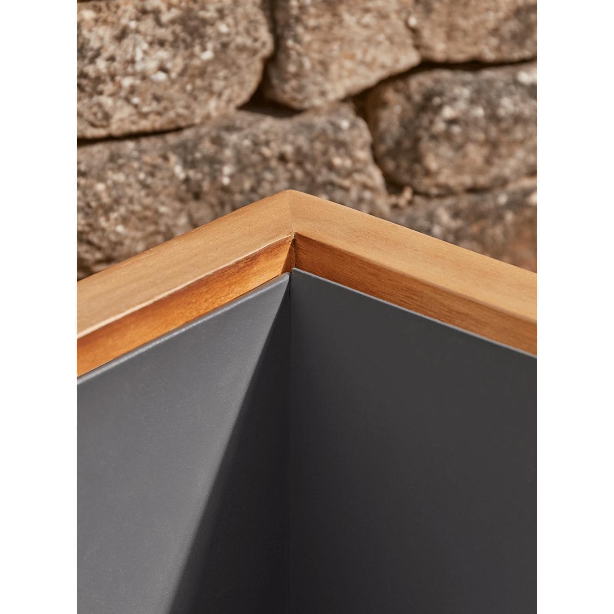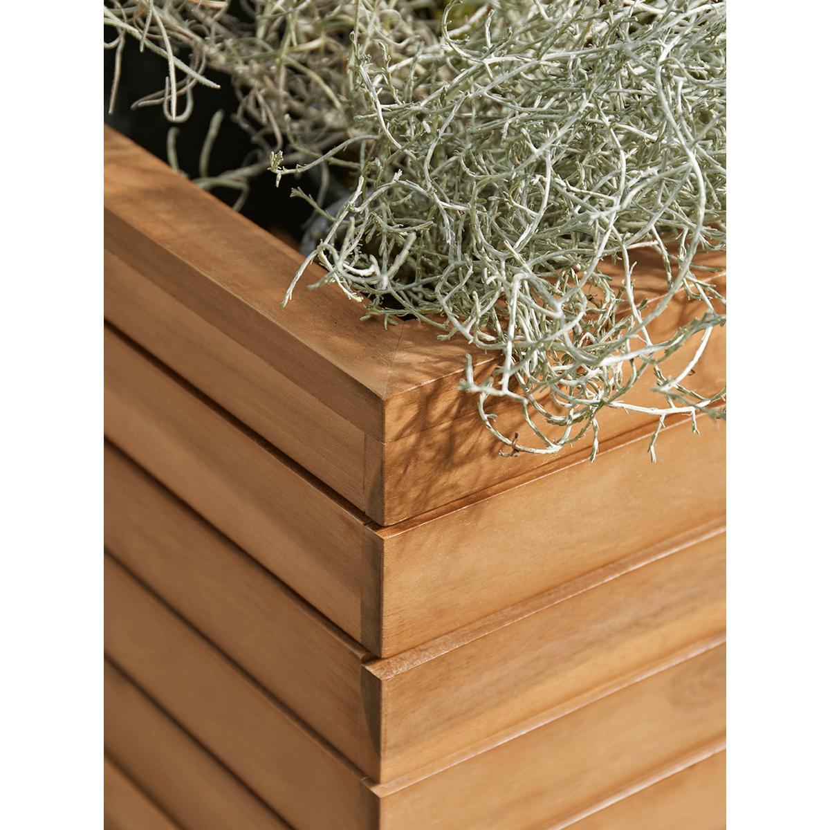 In a rich honey coloured acacia wood, the slatted design of the Malmo Acaia Trough will add clean structure to your outdoor space. Use a pair to define an entrance or place alone to draw the eye. The planter is zinc lined and has a drainage hole. The wood will complement all varieties of shrub and flower.