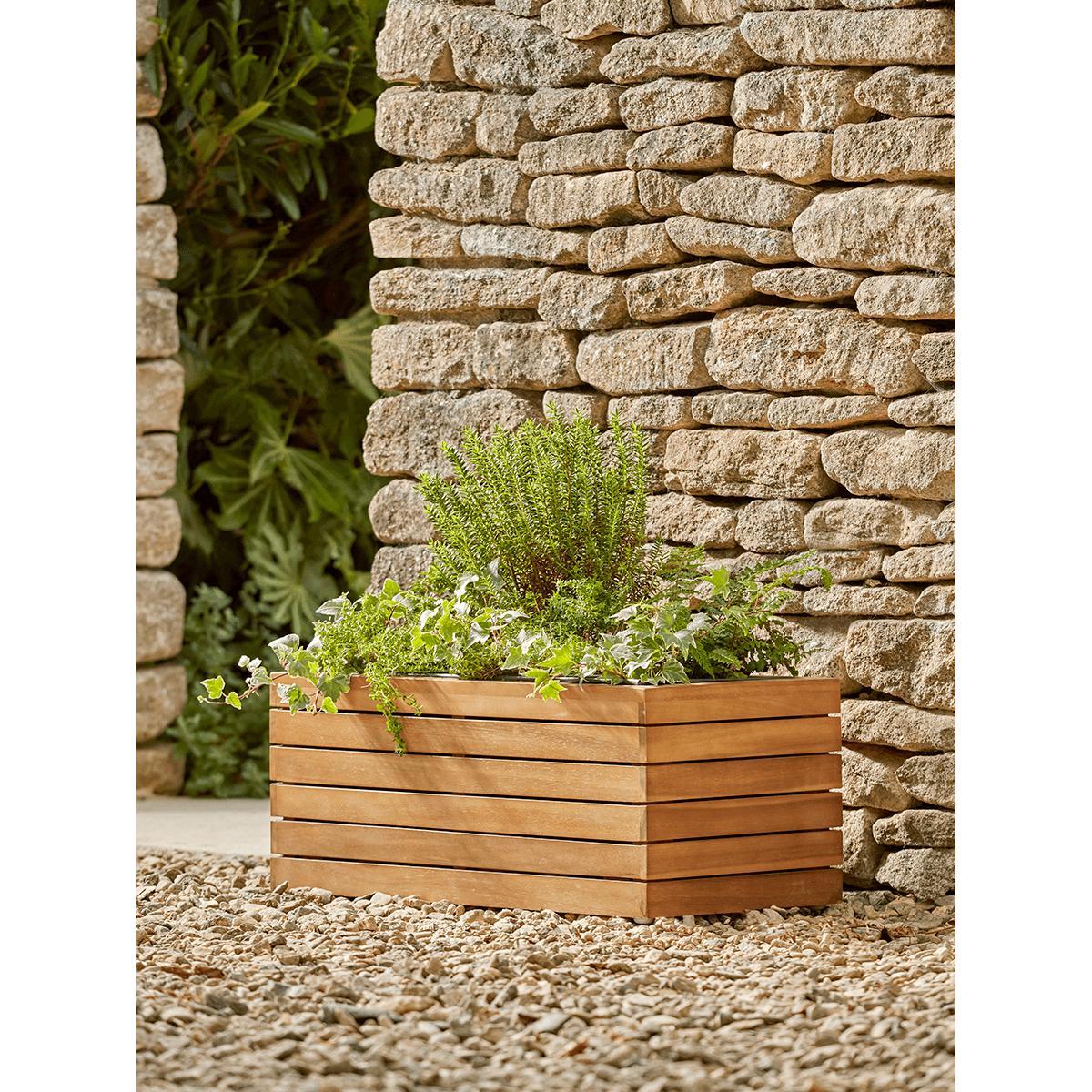 I love the Malmo Acaia Trough for its sleek, modern design that seamlessly combines function with style. Its contemporary look works particularly well in minimalist or Scandinavian-inspired interiors, but it can also add warmth to more rustic or coastal spaces thanks to its natural wood finish. Practical styling tips include pairing it with a mix of trailing and upright plants to create visual interest, and placing it on a patio or by a sunny window to maximise growth. The long, streamlined shape makes it versatile for lining up along a balcony rail or punctuating a garden path, adding a touch of organised greenery that looks effortlessly chic.