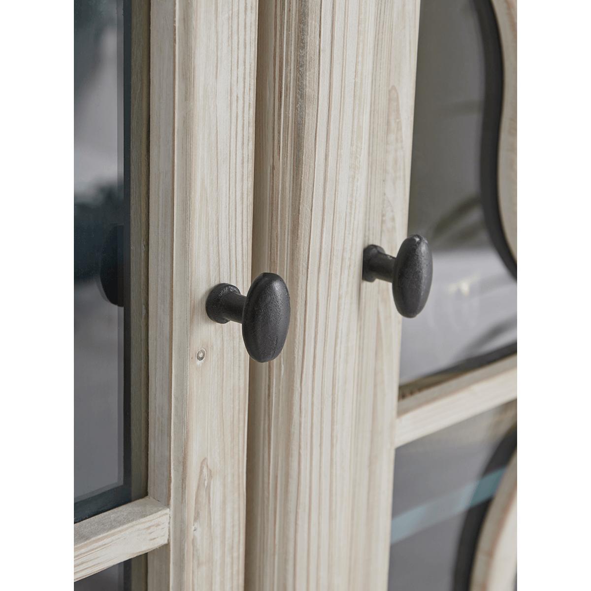 I’m a fan of the Maroq cabinet for its mix of simple, weathered timber and the elegant fretwork on the glass doors - it brings just the right balance of texture and refinement. The deep, muted lining contrasts beautifully with the neutral outer finish, making it equally at home in a coastal-inspired sitting room, a relaxed farmhouse kitchen or a contemporary living area. For styling, keep each shelf purposeful: place a small stack of vintage books beside a sculptural vase, group matching glassware at varying heights and introduce a sculpted bowl or two for a tactile element. LED strip lights along the top shelf can really showcase your favourite pieces and create a welcoming glow in the evenings.