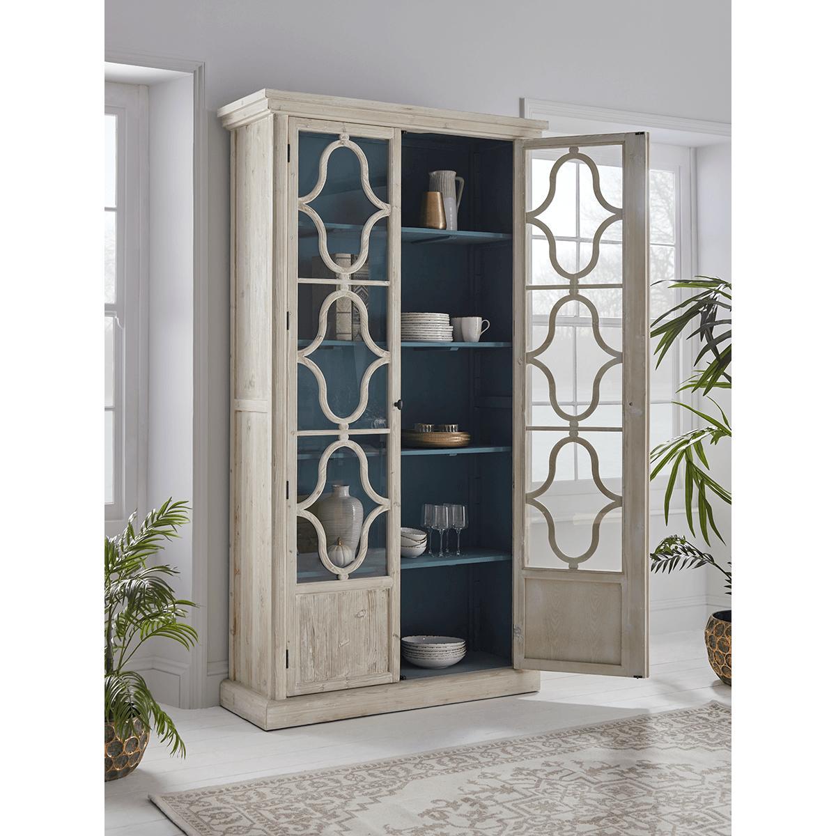 With striking good looks that wouldn’t be out of place in a Moroccan riad, this elegant display cabinet will add character and charm to any interior style. A subtle wash highlights the grain of the reclaimed pine frame and tempered glass in the ornately framed double doors adds to its architectural quality. A luxurious deep blue colouring to the inside of the cabinet will show off your treasures to best effect - the perfect backdrop for some special china perhaps?.