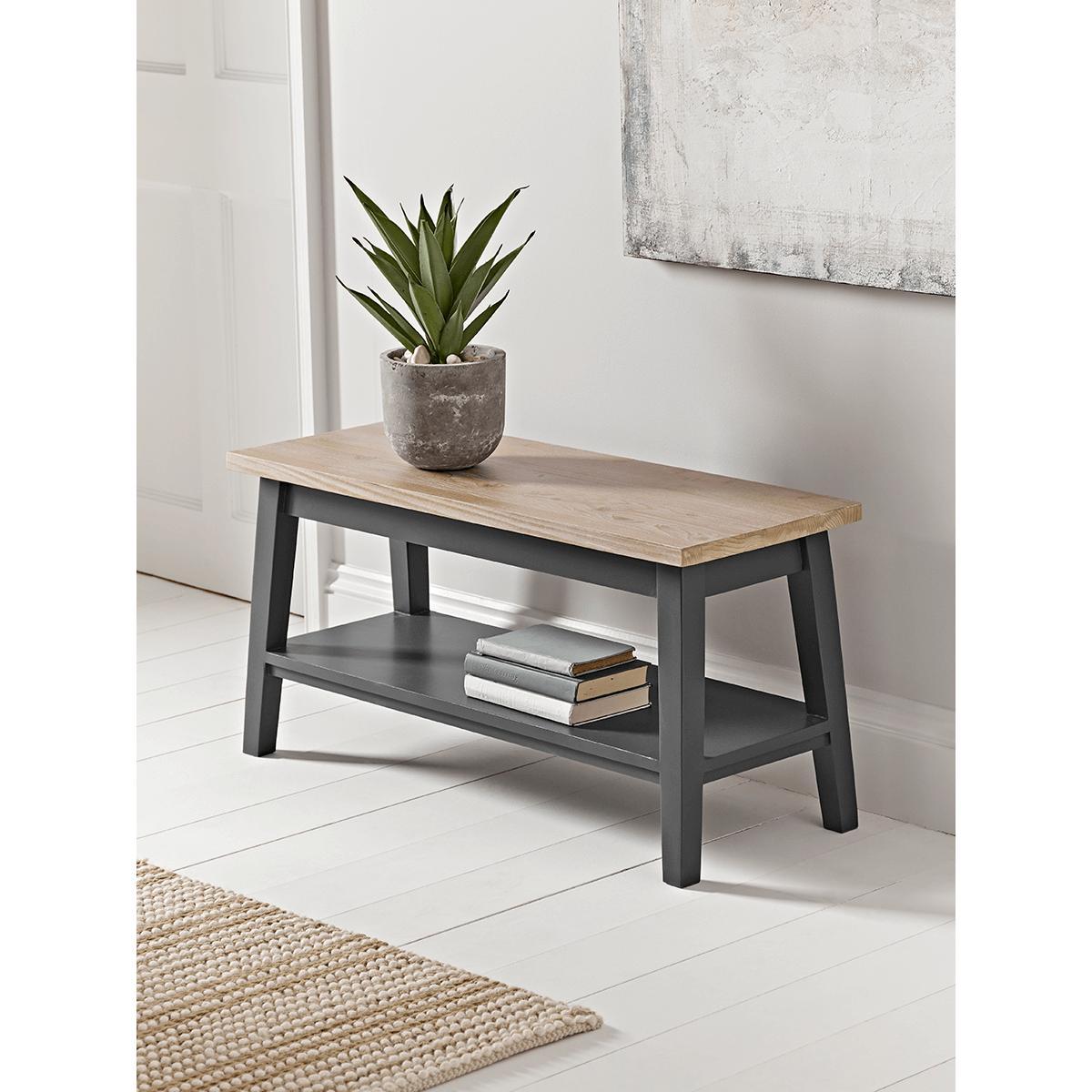 I love this bench for its versatility and clean design. It works particularly well in both contemporary and rustic interiors, providing a functional piece without overpowering the space. Its storage feature makes it practical for entryways, living rooms, or hallways, offering a discreet spot to keep shoes, throws, or other essentials. When styling, consider pairing it with a cosy cushion or some decorative throws for added comfort, or layering it with smaller table lamps and decorative objects to create a welcoming vignette. The natural wood top paired with the darker frame creates a neutral palette that easily complements a range of colour schemes, making it a stylish yet practical addition to many rooms.