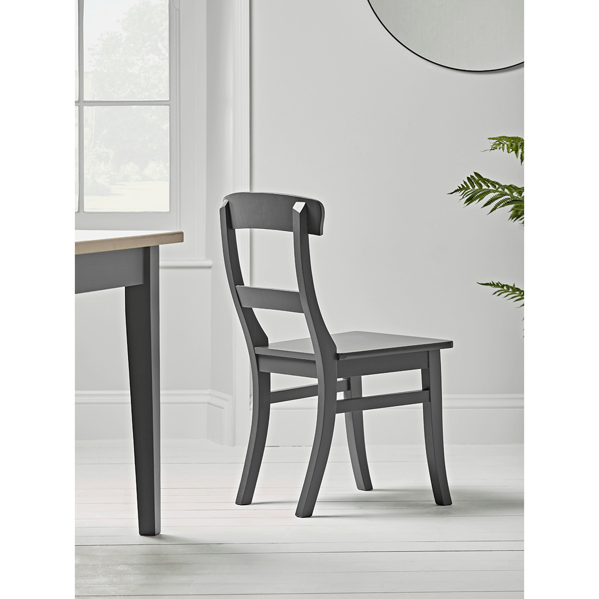 I really like this wooden dining chair for its timeless, versatile look. Its sleek, understated design makes it suitable for a range of interiors, from classic country kitchens to contemporary dining spaces. The neutral grey tone offers a modern twist, allowing it to blend seamlessly with various colour schemes and other furniture pieces. For styling tips, consider pairing it with a wooden or glass table for a mixed-material aesthetic, or dress up the seat with a colourful cushion for added comfort and character. It's a practical choice that combines style with durability, making it ideal for everyday use in busy family homes or casual dining settings.