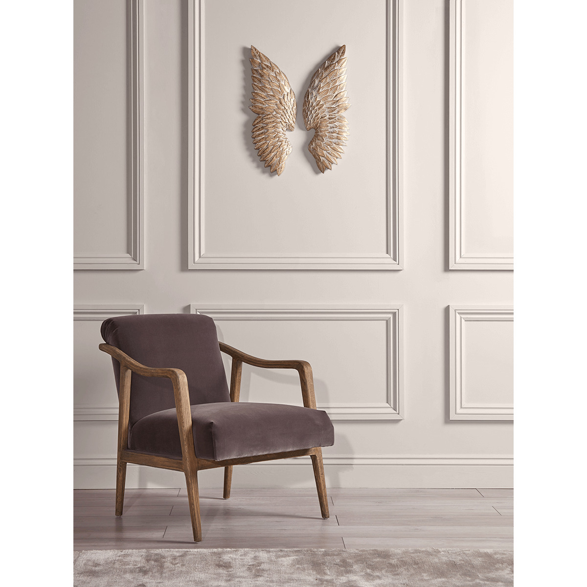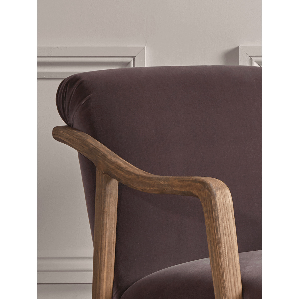 A simply beautiful armchair, one that sets a scene of relaxed elegance by a solid oak feature frame, a subtle recline, and a sumptuously filled soft grey toned velvet seat. A wonderful spot to lounge, and a transforming piece that will instantly uplift any space.