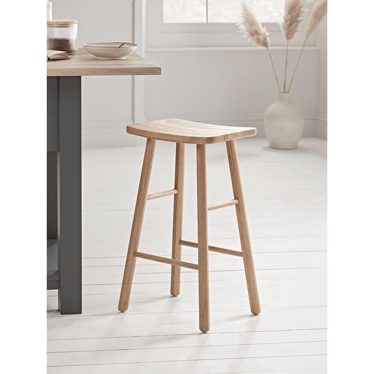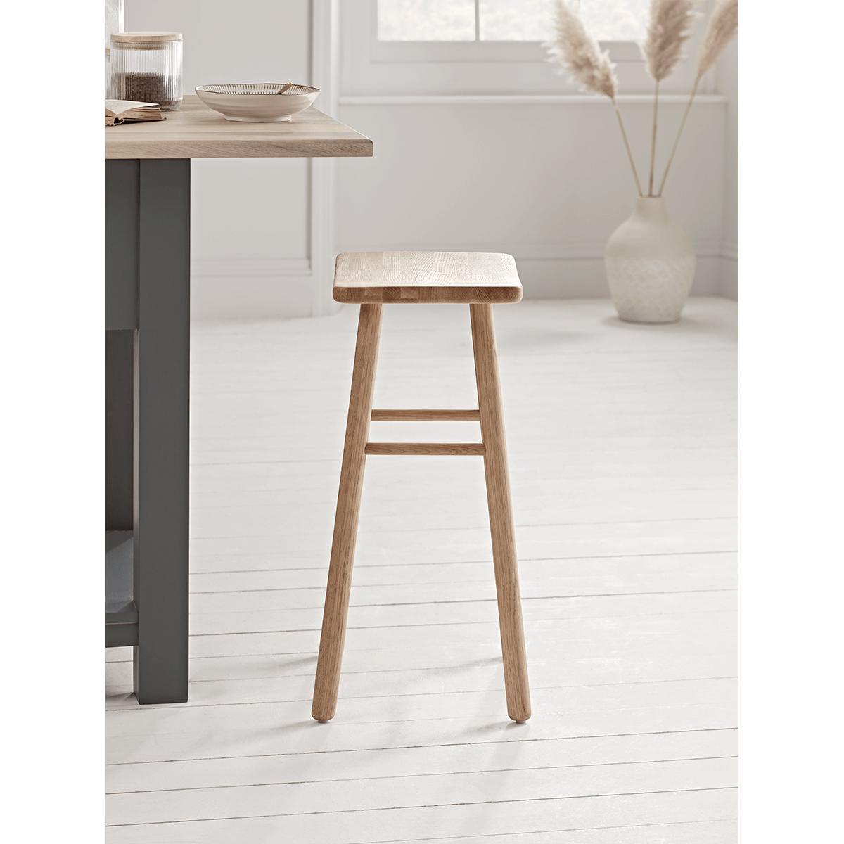 Crafted from sturdy oak with a smooth finish that allows the wood’s natural grain to show through, our Oak Curved Topped Counter Stool is the perfect homage to simple design with its slightly concave seat and slender legs. With a rung on which to rest your feet, our robust stool is the perfect height for a breakfast bar and complements many interior styles, especially a rustic country or pared back Scandi-inspired look.