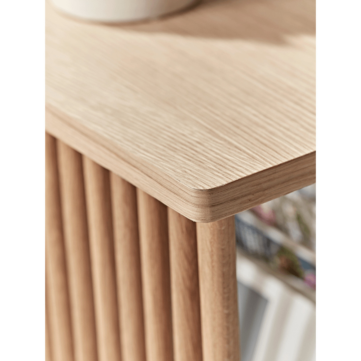 With the white oak finish characteristic of Scandinavian pieces, our Magazine Side Table marries function and form effortlessly in its design. A contemporary side table complete with feature solid oak spindles to contain all of your favourite magazines.