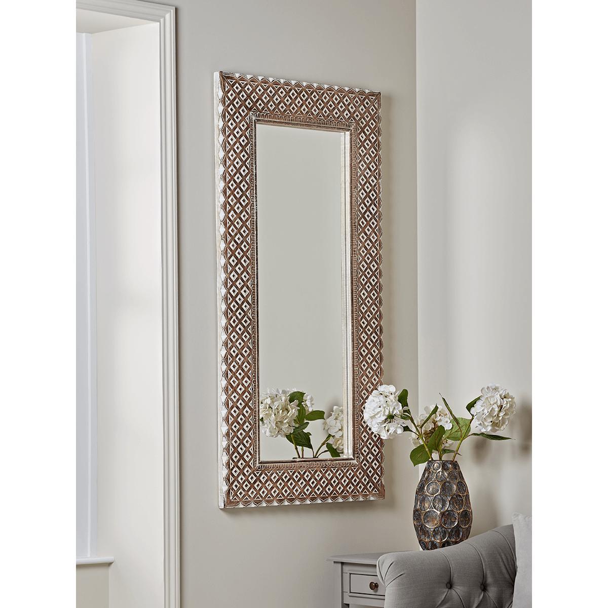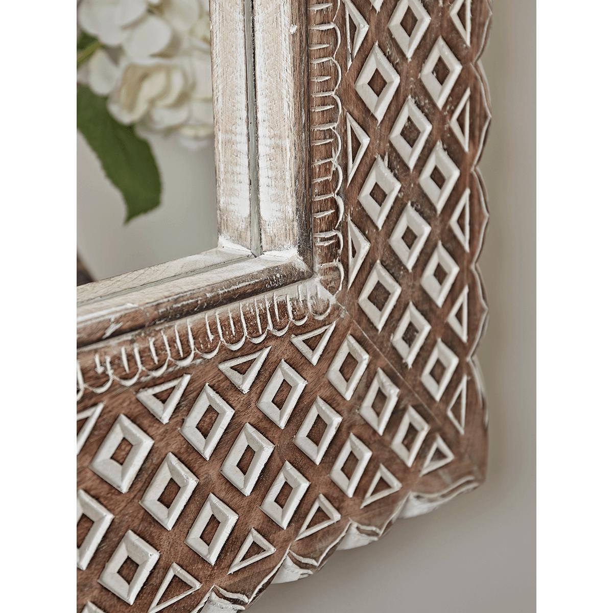 Elevate your space and add an accent of classic elegance with our Ornans Full Length Mirror. With an intricately carved, partially paint washed mango wood frame and tastefully distressed finish, this piece will brighten your room while creating an air of understated glamour.