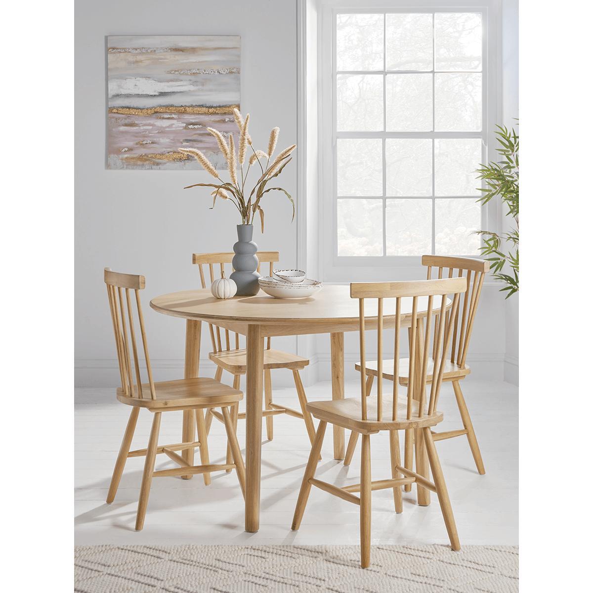 I love the round Oslo oak table for its classic yet versatile appeal. Its natural oak finish makes it a great centrepiece in both Scandi-inspired spaces and more eclectic interiors. The round shape promotes conversation and creates a welcoming vibe, especially in smaller dining rooms or open-plan areas. Styling tip: pair it with a mix of modern and vintage chairs for an eclectic look, or keep it sleek with matching wood seats for a cohesive feel. It works well with neutral palettes, but can be accented with colourful tableware or textiles to add personality. Overall, it’s an adaptable piece that offers both style and practicality.