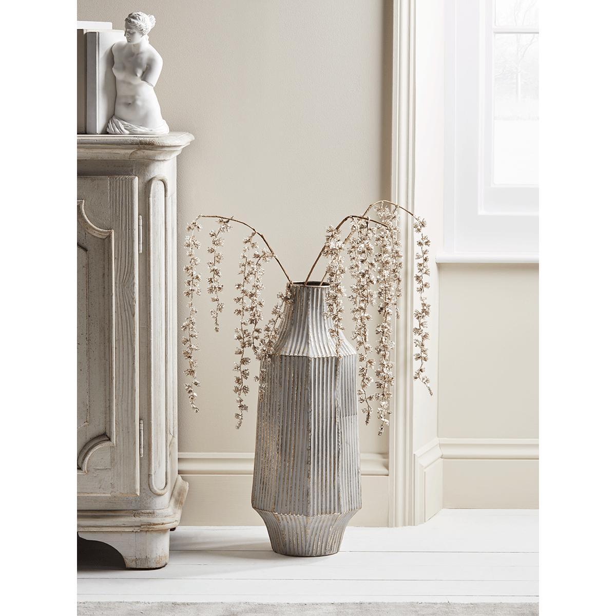With enough height to support larger statement sprigs and sprays of decorative plant life, our Oversized Whitewashed Fluted Vase can be placed down on the floor or up on a sideboard for an eye-catching focal point in your hallway or living space. This piece has an elegant antiqued finish with golden detailing for an authentic neoclassical look.