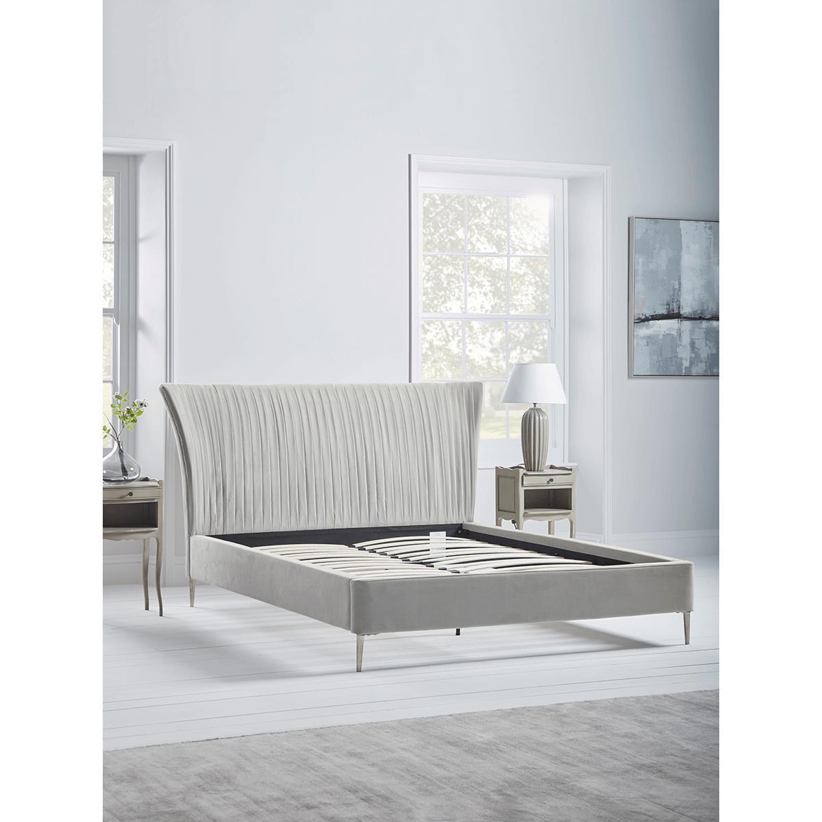 NEW Pleated Velvet Super King Bed - Soft Grey