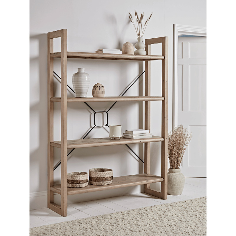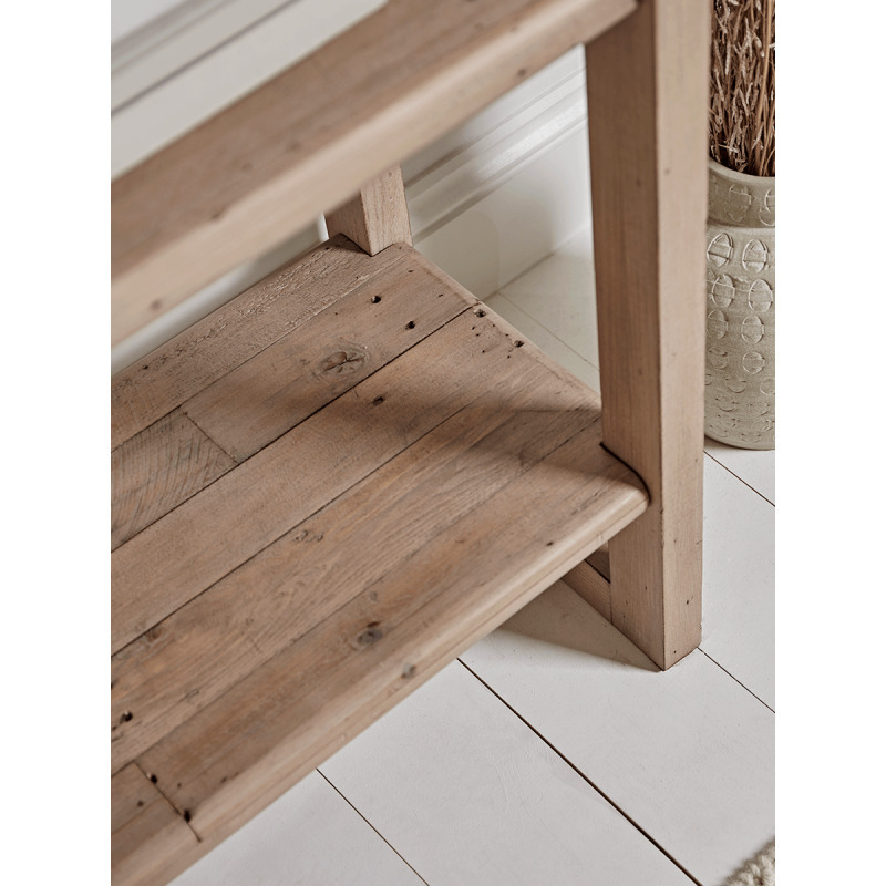 Crafted from reclaimed timber with beautiful natural wood grain details and a matte finish, our Provence Open Shelf Unit is naturally weathered, making each set of shelves entirely unique. With ample storage space and a feature steel frame across the back, position in any pared-back space to complement your style and decorate with your favourite ornaments, magazines and books. Discover the rest of our. Provence. Range.