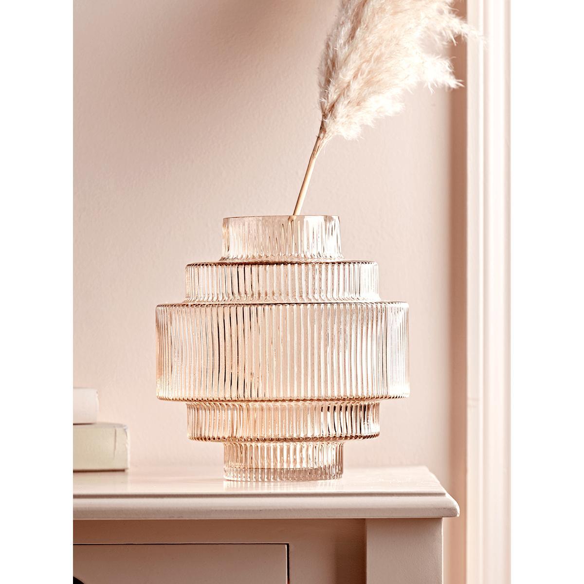 I love this vase for its layered, textured design which adds visual interest without overwhelming a space. It works particularly well in contemporary or minimalist interiors, where its subtle ribbing can complement clean lines and neutral palettes. For styling, I’d suggest pairing it with dried grasses or tall, simple stems to highlight its vertical form, or using it as a standalone statement on a sideboard or mantelpiece. Its versatile size makes it suitable for both small blooms or a striking single branch, making it a practical yet stylish choice for enhancing various room schemes.