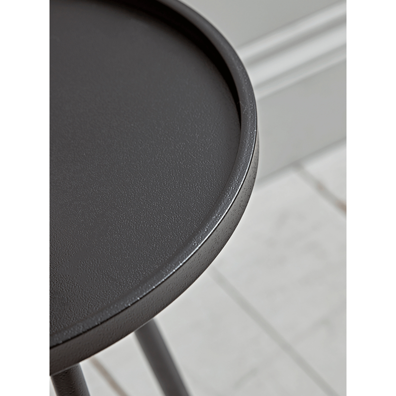 Perfect for adding an industrial touch to your lounge or living area with hard wearing iron in a deep grey finish, our stylish side table is available in a small and a large size, and features a round top with a small lip, above slender stiletto legs.