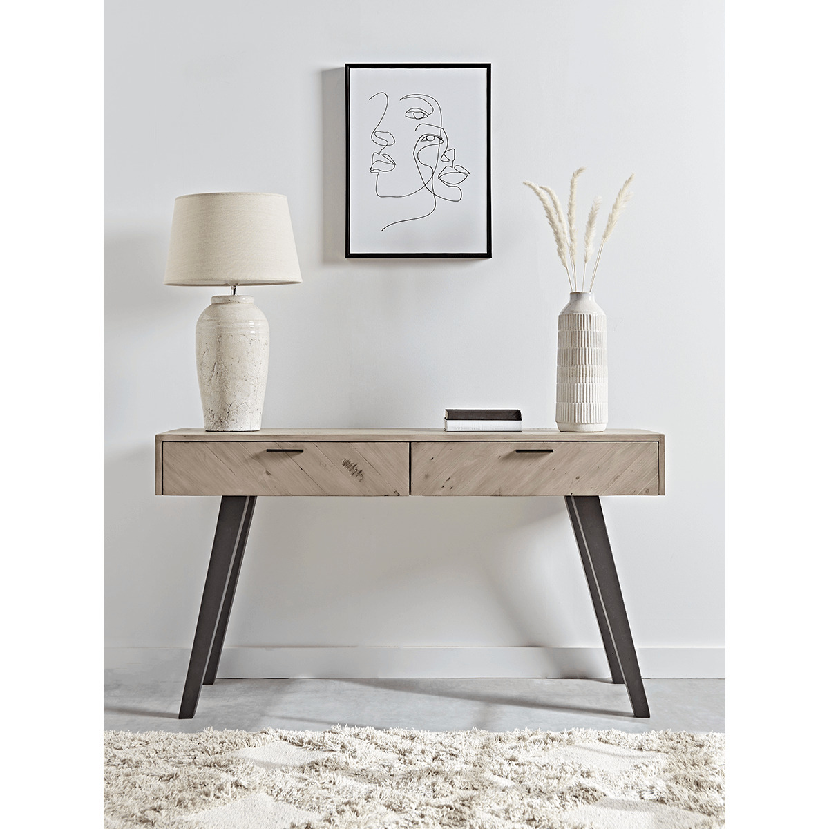 Full of relaxed modern style, our Salcombe Console Table is beautifully simple, well-considered and practical. The natural warmth and patterning of the reclaimed wood coupled with the contrastingly dark legs will instantly elevate the look in any room, while two wide drawers create a stylish storage solution. Discover more from our. Salcombe. Range.
