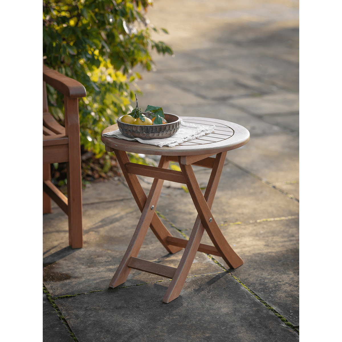 The perfect place to rest your drinks, snacks and books on a warm day, our Salva Side Table combines classic garden furniture design with the beautifully rich chestnut hues of eucalyptus wood to create a laid back look in your outdoor space.