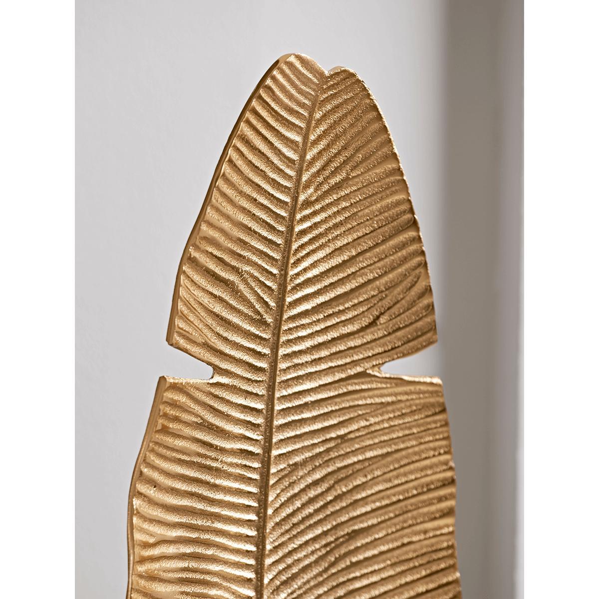 Accent your living space with touches of glamour and decorative design such as our intricate Soft Gold Standing Leaf. Made from aluminium with a golden finish, this piece will create an overall luxurious look that draws the eye and inspires the mind. A coordinating. Soft Gold Standing Feather. Is also available.