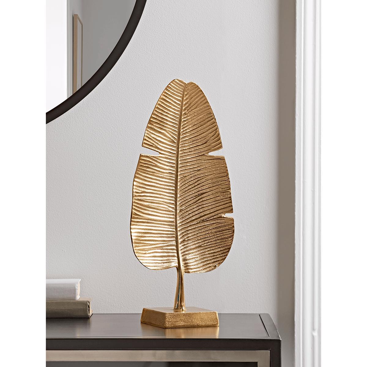 The soft gold leaf sculpture is an excellent statement piece for adding a touch of contemporary elegance to various interiors. I love how its clean, modern silhouette works well in minimalist spaces, but it can also add warmth and texture to more layered, textured environments. It’s versatile enough to sit on a console table, mantelpiece, or sideboard, and I recommend pairing it with other metallics or natural materials like wood and stone to create a balanced look. When styling, consider keeping surrounding decor simple to allow the sculpture to stand out or group it with other smaller accents for a curated, gallery vibe. Its neutral yet luxurious tone easily complements both cool and warm colour palettes.