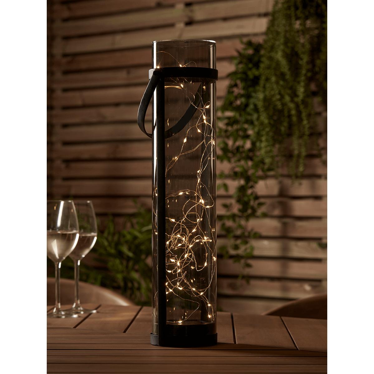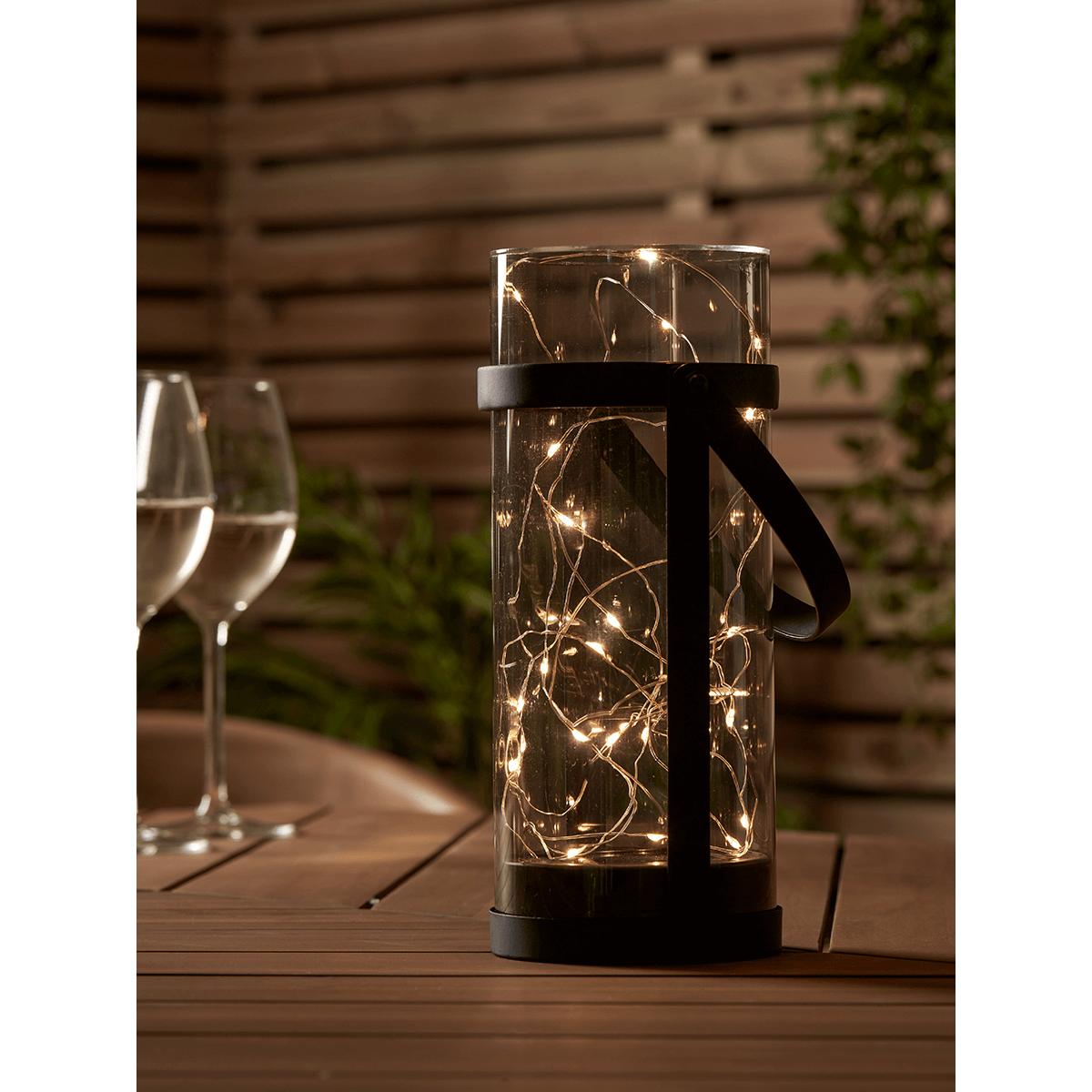 The deceptively simple lantern form of this solar powered LED light is taken out of the ordinary with the addition of 50 tiny white LED lights on a nest of wire within the clear acrylic capsule. Guaranteed to add firefly like sparkle to your nights in the garden.