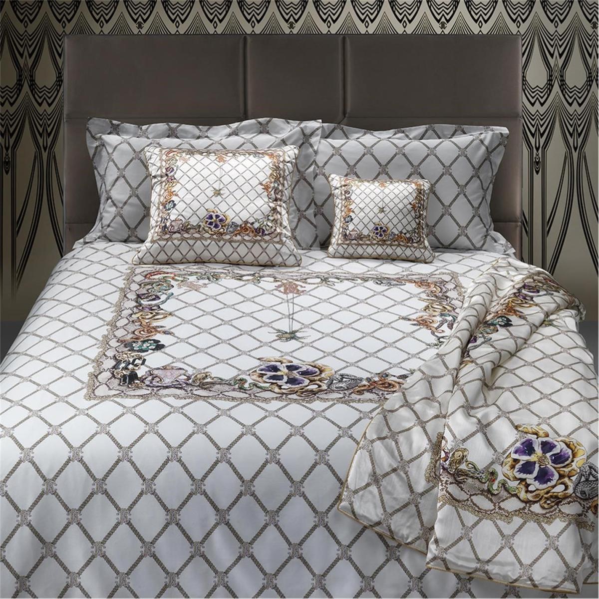 Bring daring design to your bedroom with this New Spider bed set from Roberto Cavalli Home. Unashamedly opulent and impossibly soft, this bed set is enhanced with a Cavalli logo chain design and features a border of vivid flowers, snakes and spiders. Perfect for making an impact, create depth and drama by layering over the complementing cushion and throw.