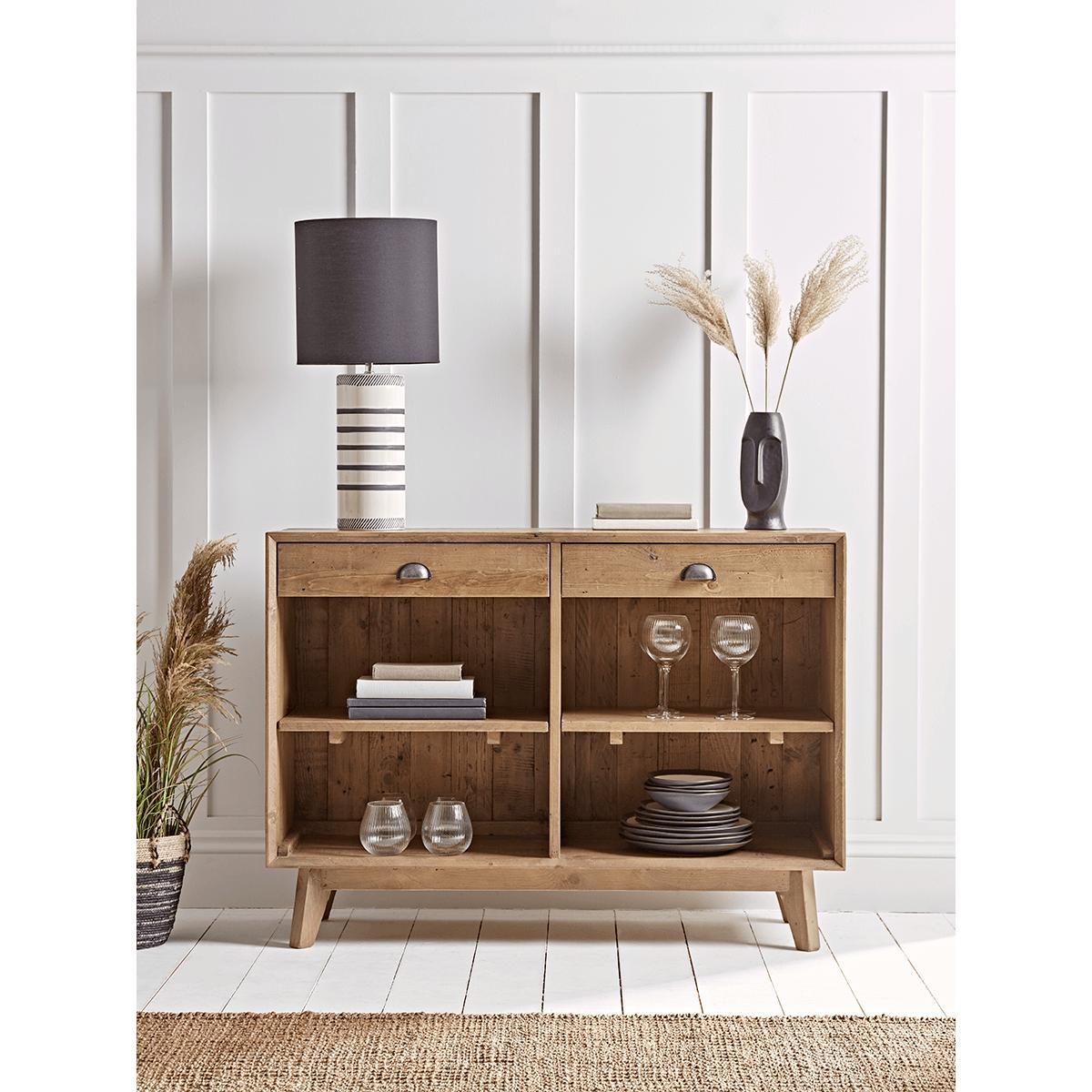 I really like this sideboard for its clean, compact design, making it versatile enough to work in a range of interiors from modern minimalist spaces to cosy, rustic settings. The natural wood finish adds warmth and texture, which can soften a contemporary look or complement other wooden accents in a more traditional or eclectic room. Practical styling tips include using it as a display surface for a mix of decorative objects and practical storage; for instance, pairing the top with a table lamp, some vases, or favourite books. Inside, it’s ideal for organising dinnerware or everyday essentials, making it both functional and stylish. Its neat size and understated design make it a great addition to living rooms, dining areas, or even hallways where space and style are equally important.