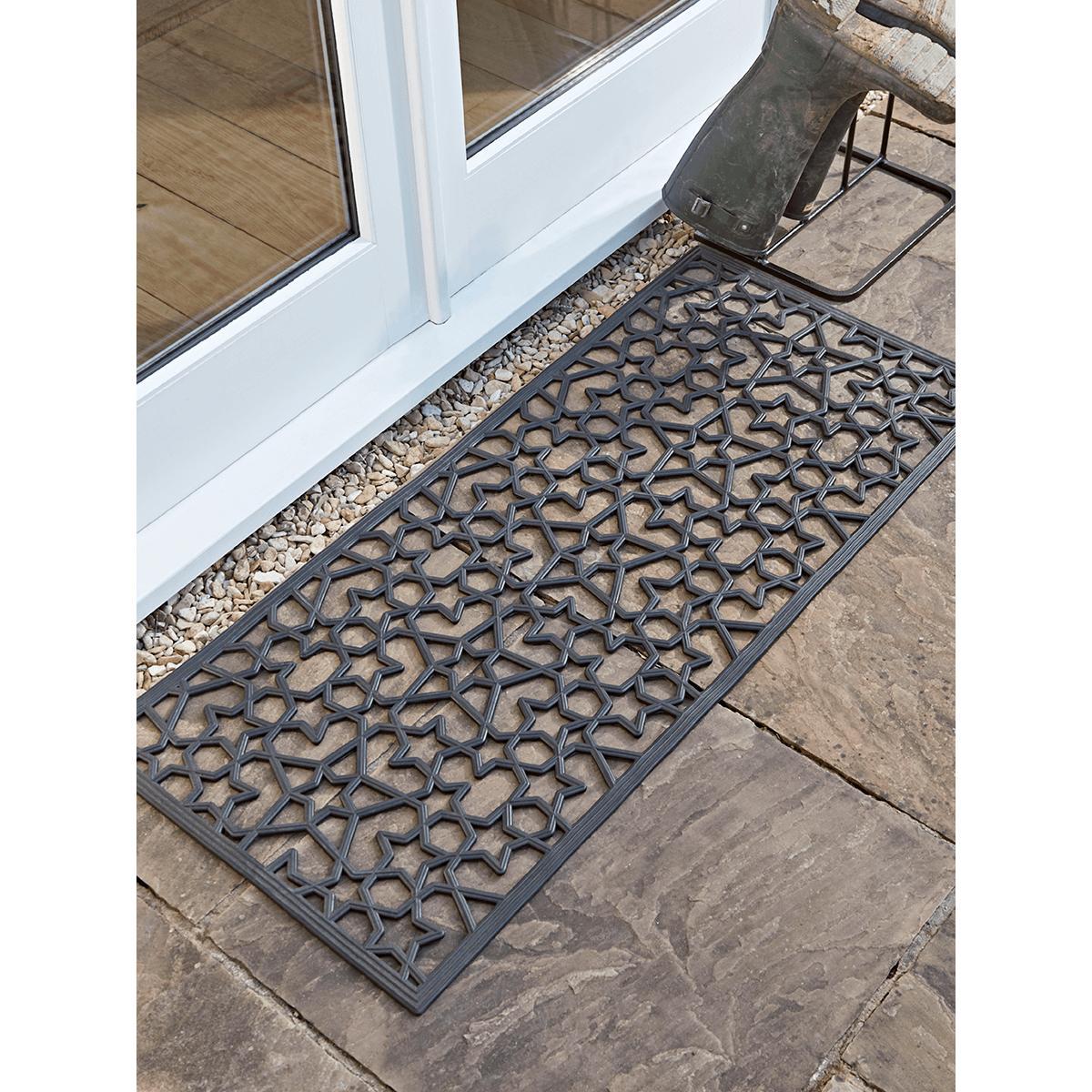 Add a little extra finesse to your doorway with our double Star Rubber Doormat. Made from 100% anti-slip rubber, this mat is perfect for placing inside or outside an exterior door to prevent muddy floors and promote stylish living.