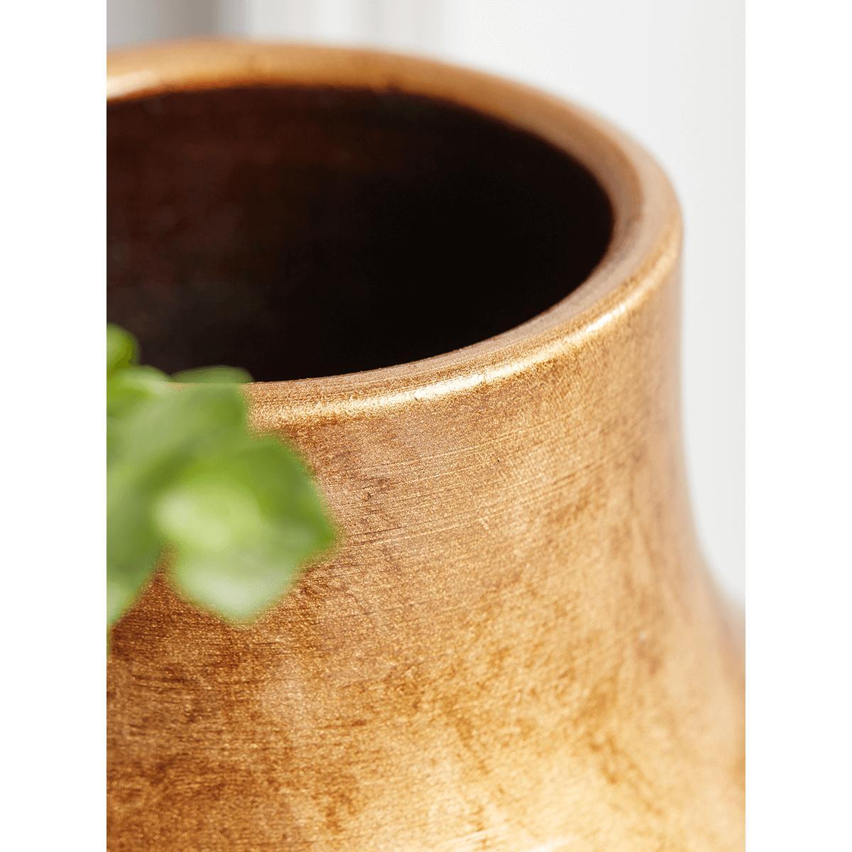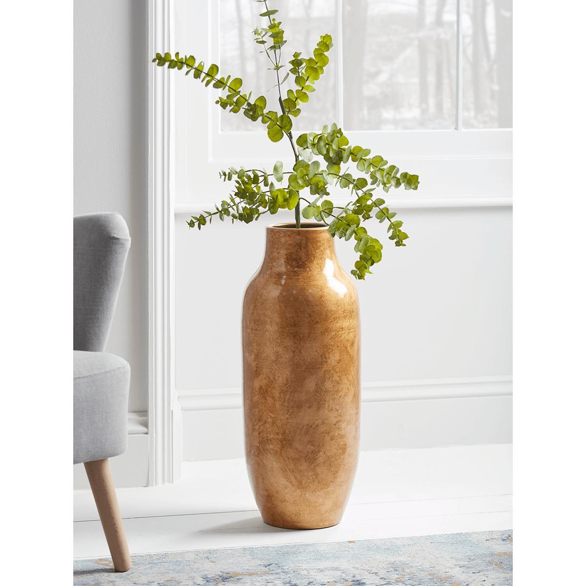 With a luxuriously decorative finish and statement height, our Tall Antique Gold Bottle Vase is sure to draw all eyes to your favourite sprigs and sprays of indoor greenery, whether faux or fresh. Made from terracotta with an antique gold coloured finish, position close to a source of natural light to really see this piece shine. Discover our wide range of. Faux plants and flowers.