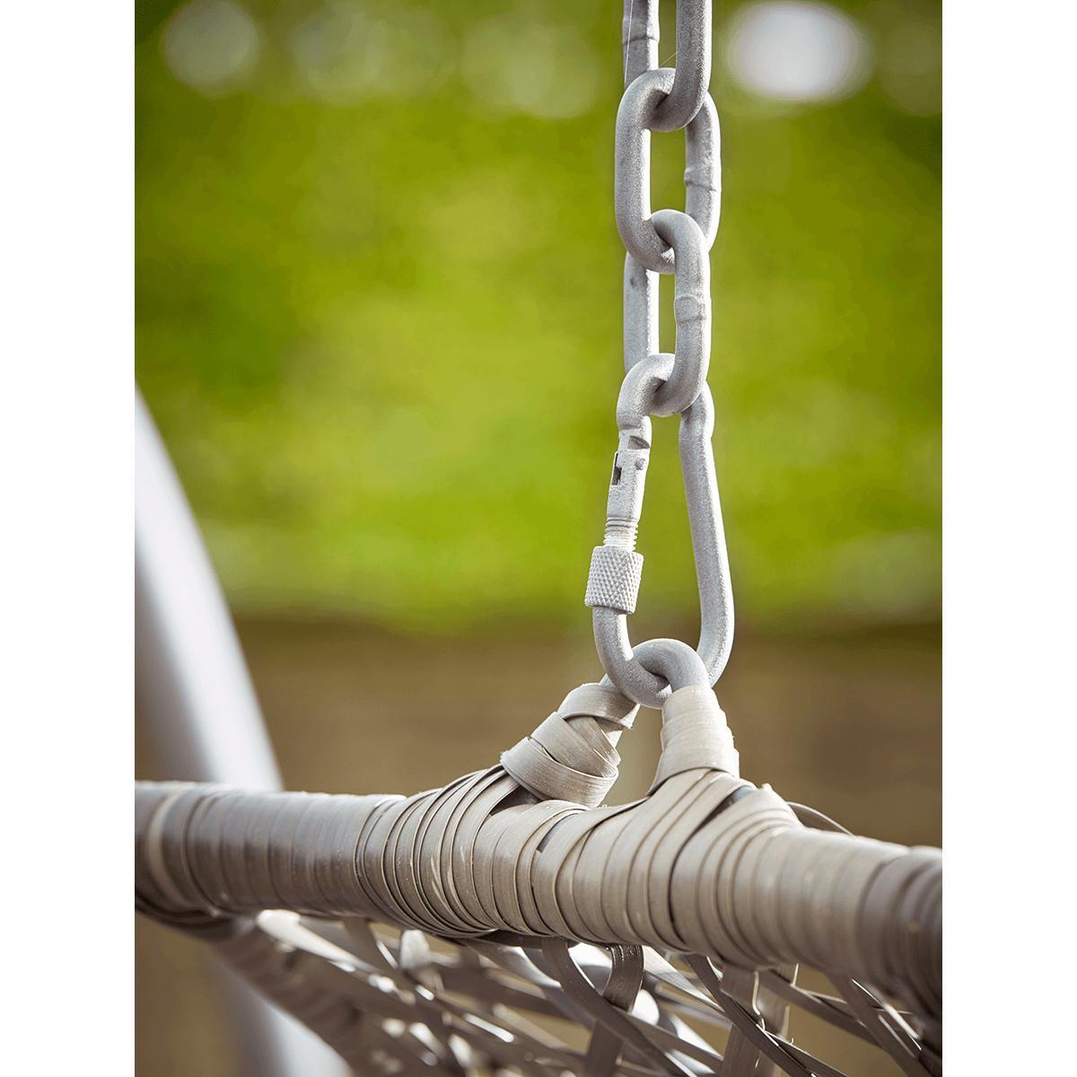 I love this Thasos triple hanging chair for its contemporary yet relaxed aesthetic, making it a perfect statement piece in both indoor and outdoor spaces. It works particularly well in gardens, conservatories, or sunrooms where it can be a focal point for lounging and socialising. For styling, consider pairing it with neutral, natural textiles like linen or cotton cushions to enhance its organic vibe, and keep surrounding decor minimalist to let the piece stand out. Practical tips include ensuring it’s securely anchored if used outdoors, and adding cosy accessories like blankets or scatter cushions for extra comfort and visual appeal. It's a versatile piece that invites relaxed, informal seating while adding a modern touch to any setting.