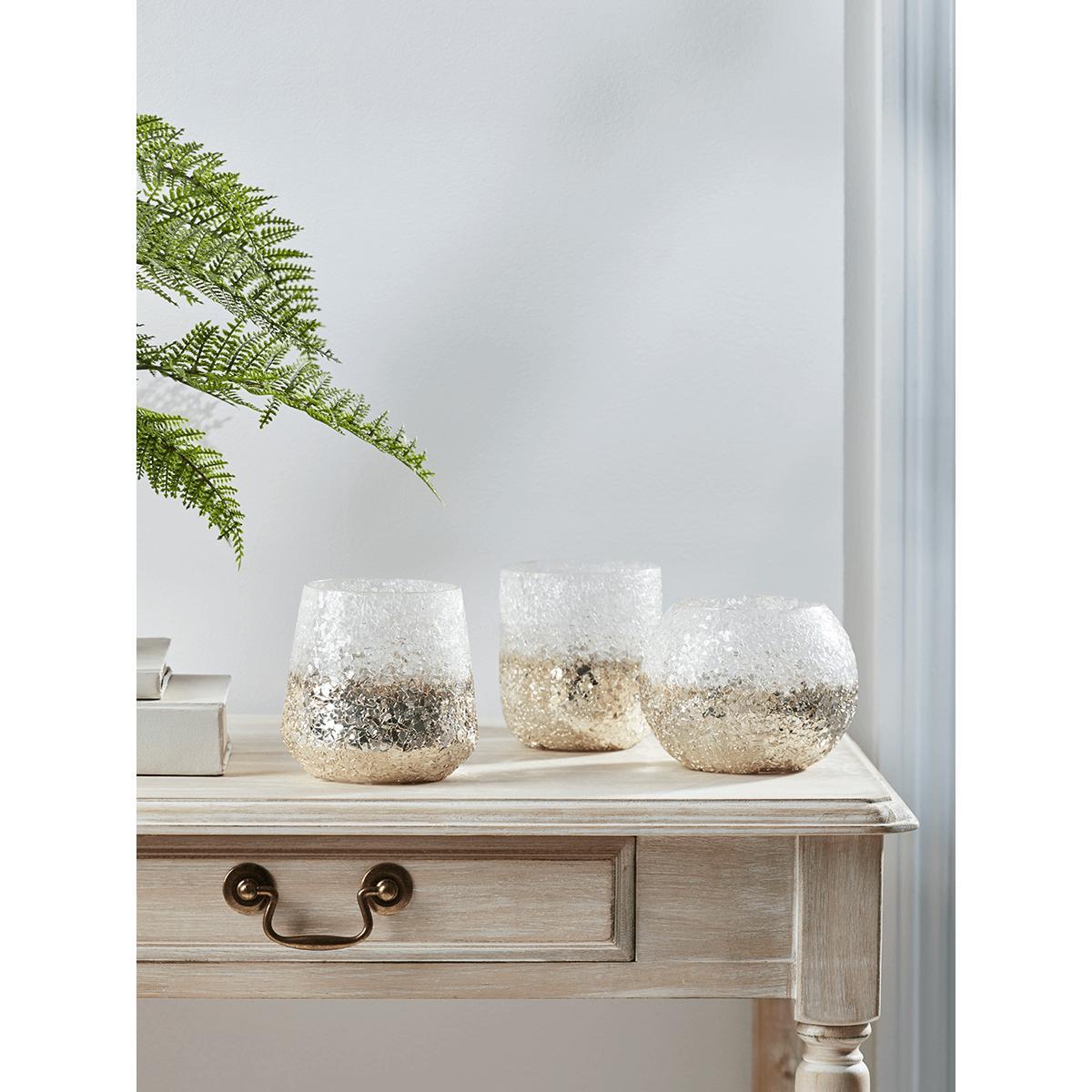 There’s no better way to create a warm, cosy ambience in your home than with a few strategically placed candles. House your flames in our set of Three Crackle Metallic Tea Light Holders to make the most of their light and cast a serene, soft glow over your space.