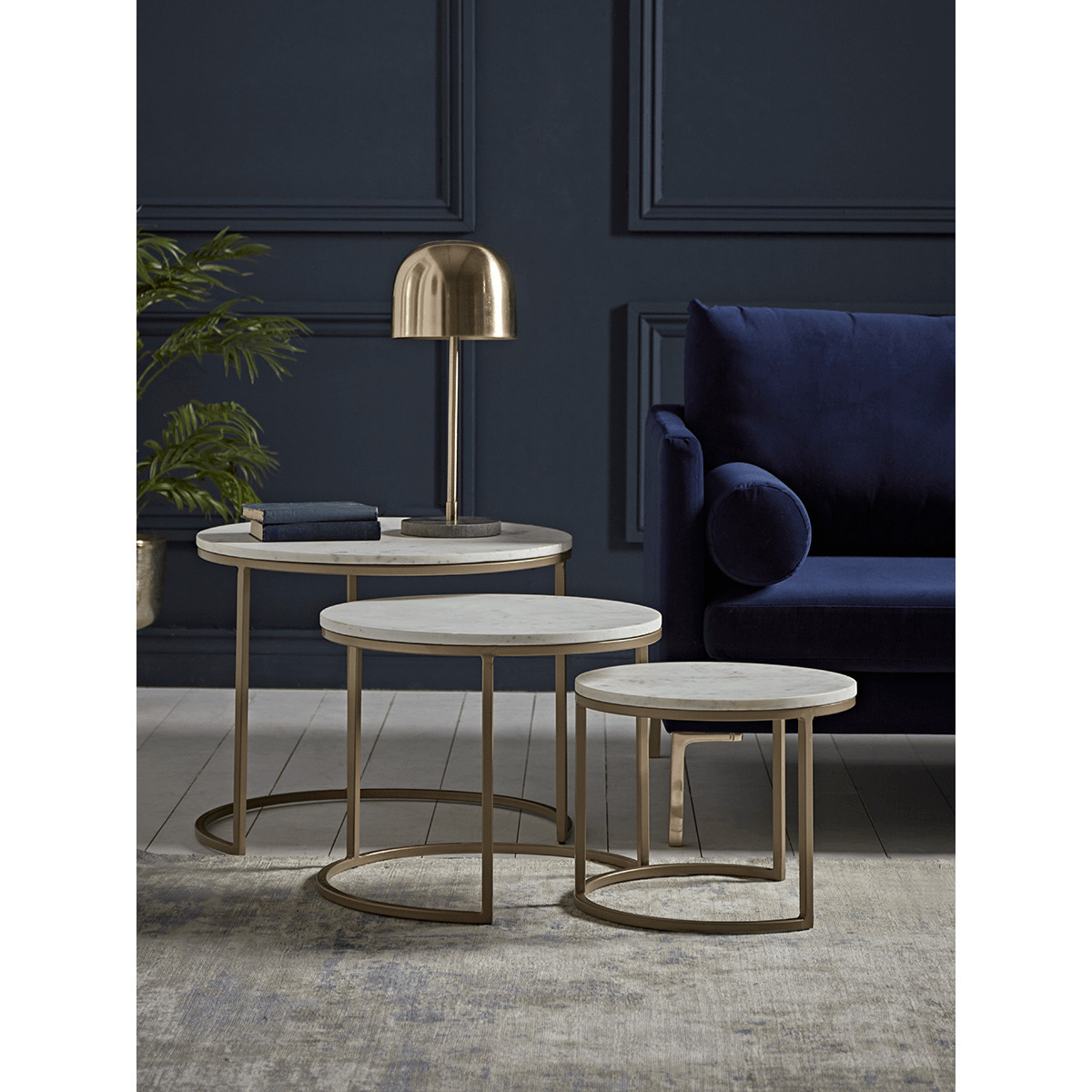 With their deco-inspired circular shape and marble top, our Three Dita Marble Side Tables will deliver character, and understated glamour to any space. Versatile and beautiful, position about your living space for handy extra surfaces, or together for a decorative display.