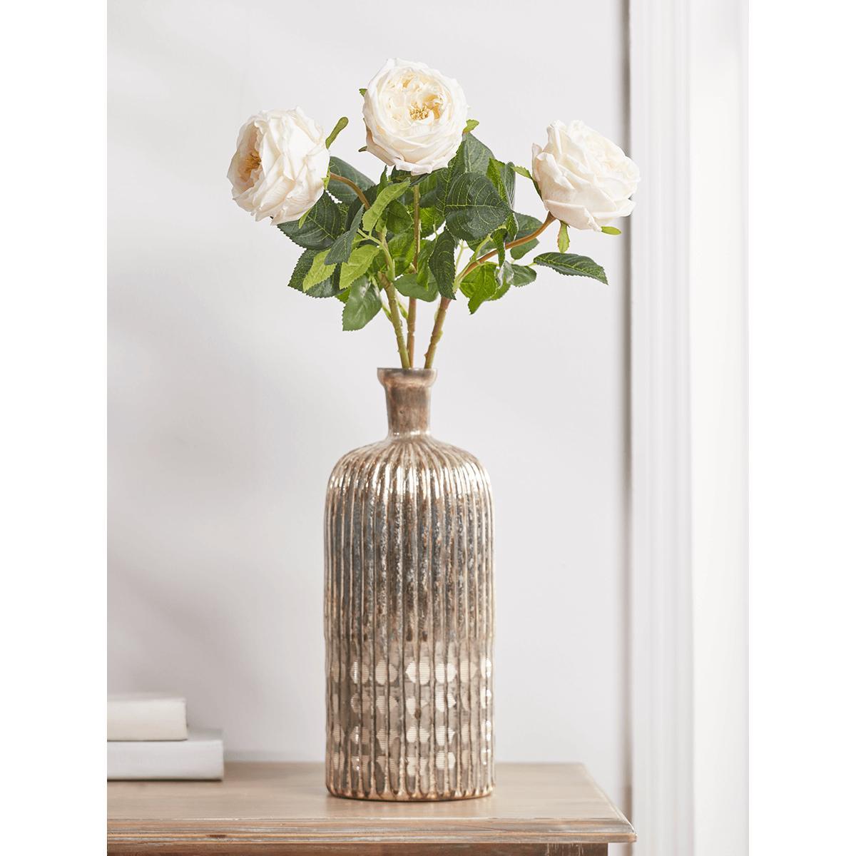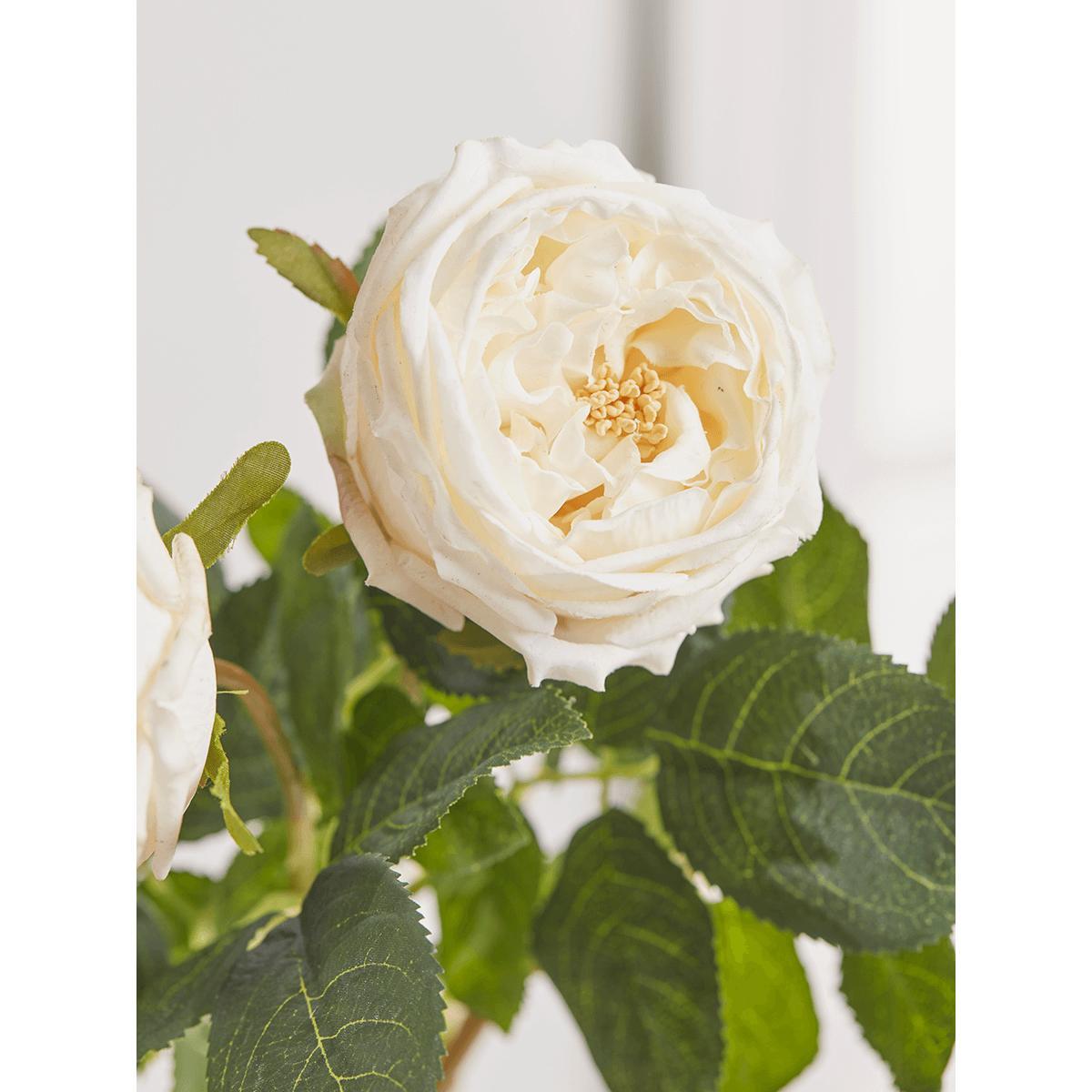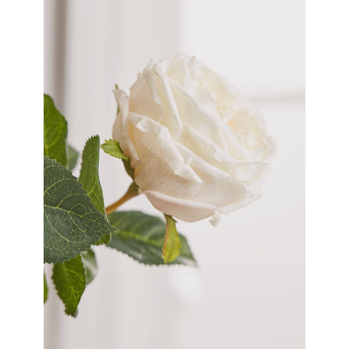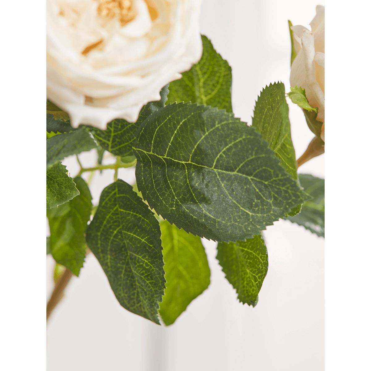 With full blown blooms reminiscent of classic old rose varieties, these Three Faux Rose Stems in cream will bring a well-loved faded elegance to your home. Impressively realistic, with rich cream petals and glossy green foliage, they can be displayed singly or grouped with other. Faux blooms. For a more opulent look.