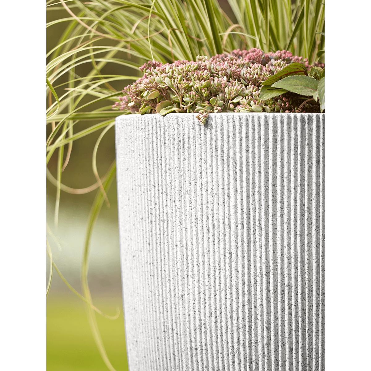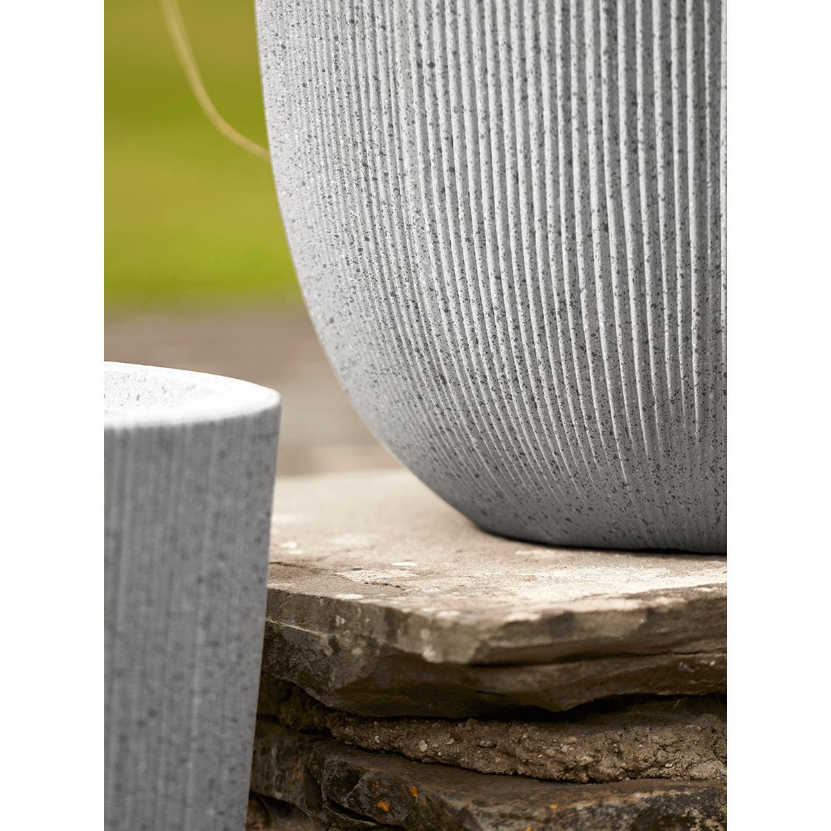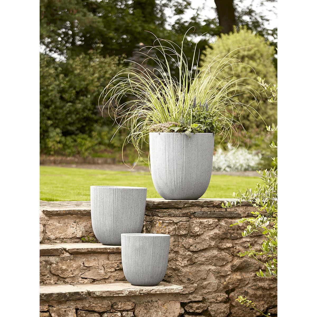 With a contemporary cylindrical shape and textural ribbed finish, this set of planters will add a clean cut modern twist to your outdoor space this season. In a set which includes one small, one medium and one large, the soft grey planters will look equally effective grouped together or placed independently.