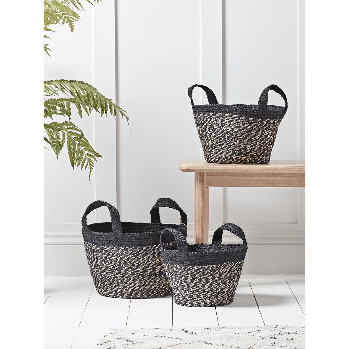 Lightweight yet hardwearing, this set of three charming Monochrome Baskets are a stylish way to stow away books, blankets and general household clutter. Try placing them in a room with a leaning towards a monochromatic colour palette, but that would benefit from the addition of natural materials in order to mellow out the aesthetic.