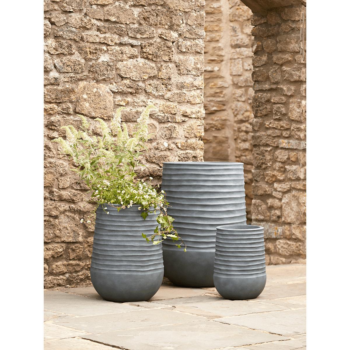 NEW Three Ridged Plastic Tall Planters - Deep Grey