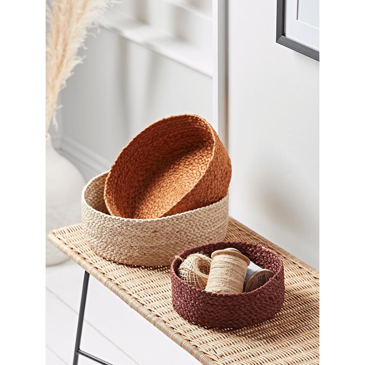 Presented in a selection of warm caramel hues, our set of Three Round Storage Baskets are ideal for stowing away household clutter while maintaining a stylish aesthetic.