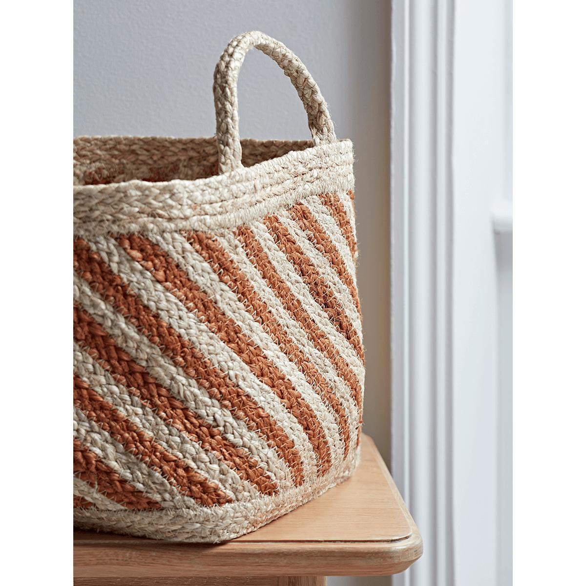 I love the three striped baskets for their simple, yet stylish design that adds a touch of charm to any space. They work particularly well in coastal, boho, or Scandinavian interiors thanks to their natural fibre look and neutral tones. Practical for organising everything from textiles to toys, they bring structure without bulk and become a seamless part of your decor. For styling, try grouping multiple sizes together for visual interest, or place them in corners to create discreet storage. These baskets also look great on open shelves or under side tables, helping to keep clutter at bay while maintaining a relaxed, inviting vibe.