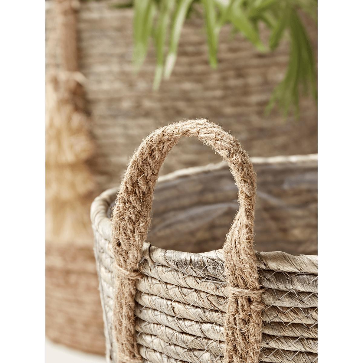 Lightweight yet hardwearing, this set of three charmingly rustic two-tone Tasselled Dipped Baskets are great for hiding boring plant pots and will slot easily into a naturally pared back Scandinavian aesthetic.