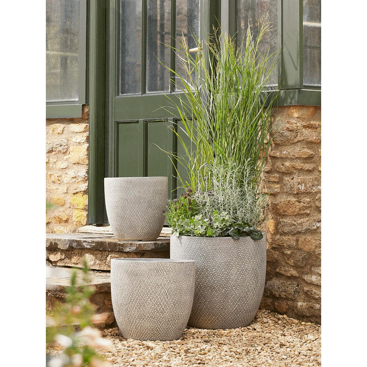 I love this set of three textured diamond planters for their versatile and modern look. The curved shape adds a soft, contemporary feel that works well in minimalist, industrial, or even boho interiors. They’re perfect for indoors or outdoors, especially in spaces like verandas, patios, or bright corner schemes where they can complement greenery without overpowering it. A practical styling tip is to vary the plant types and heights within the different pots to create visual interest - for example, tall grasses in the larger one and trailing plants in the smaller to frame a seating area or entryway. Their neutral grey texture makes them easy to pair with colourful plants or earthy accessories, enhancing both subtle sophistication and bold statements in your space.