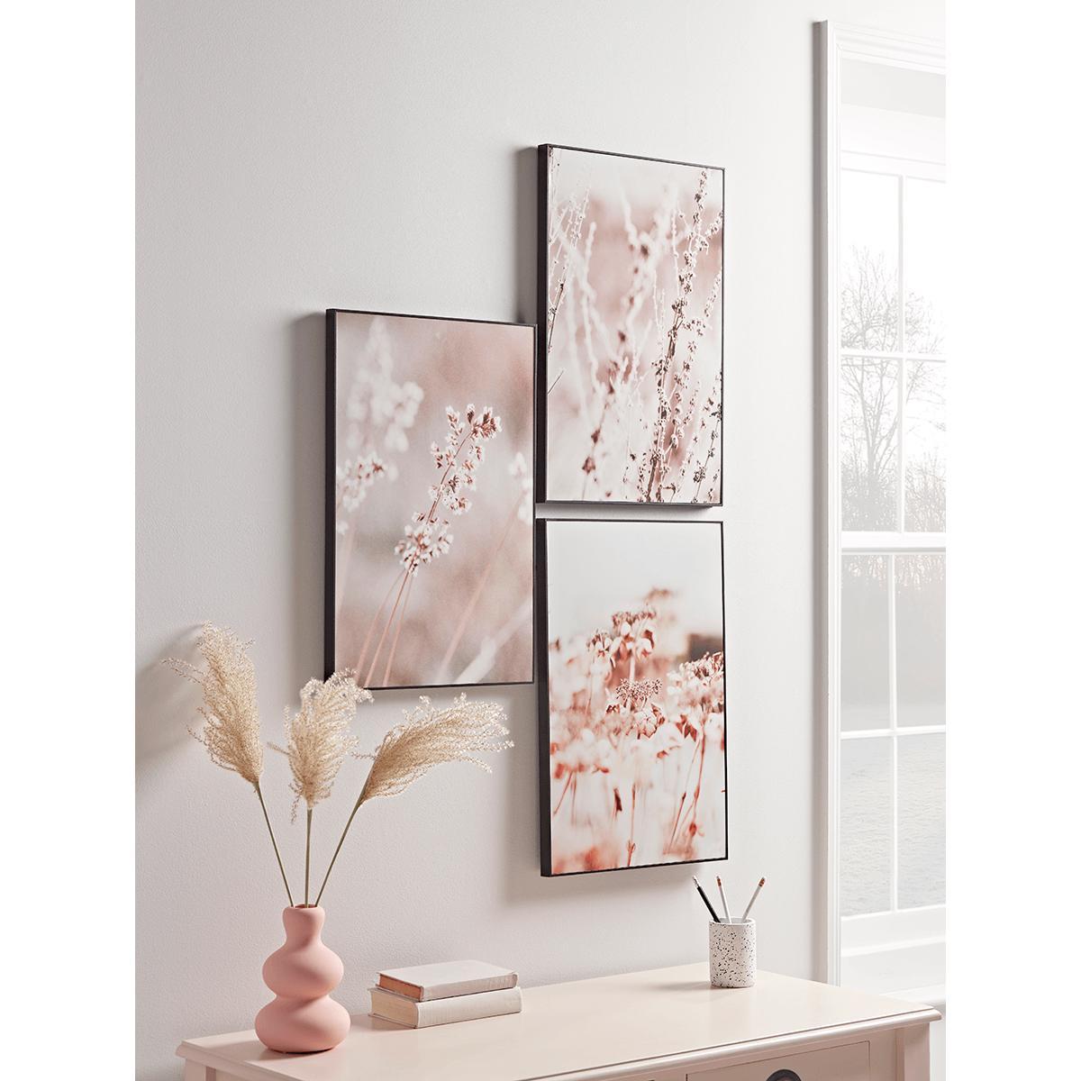 No matter where you live, feel close to nature and be constantly reminded of summer meadows with our set of Three Wild Flower Panels. Each with a warm rose tint and slim black frame, these pieces will add an air of cheerful nostalgia to your home whether they are hung together or separately.