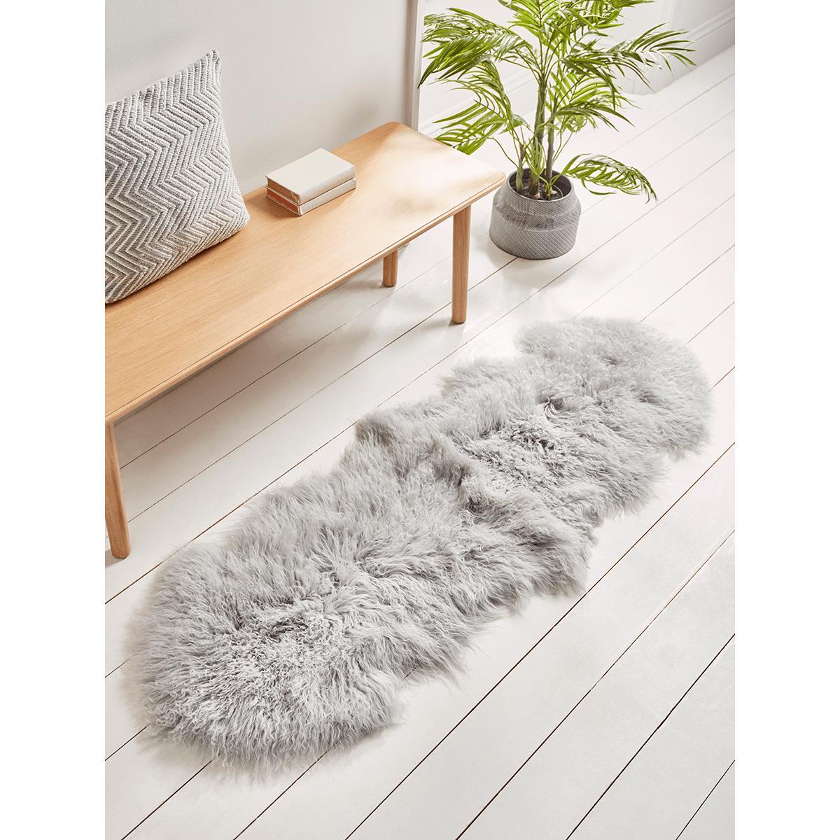 The curled pile of our sheepskin brings a wonderful dimension to its soft grey tone, and our rug will add interest to any neutral scheme and deliver a layered, cosy quality. Our double rug solves the limiting dimensions of sheepskin rugs, traditionally assigned to those small areas of the home. One can place our double as a statement in your living space or bedroom to really celebrate the decorative qualities of sheepskin, and to enjoy the sumptuous pile.