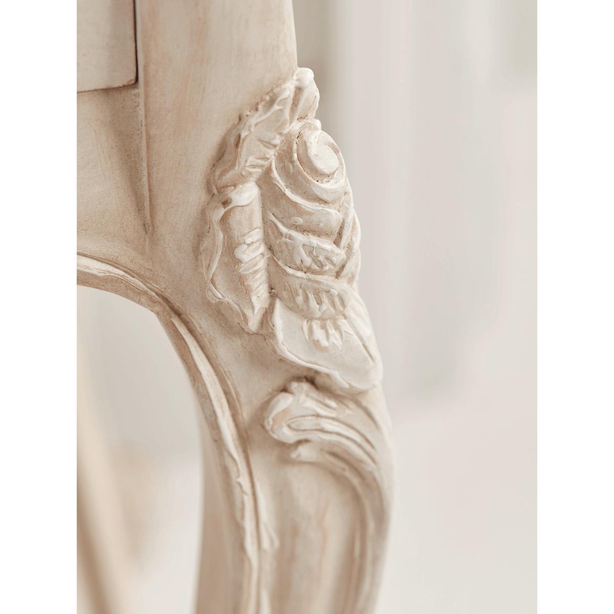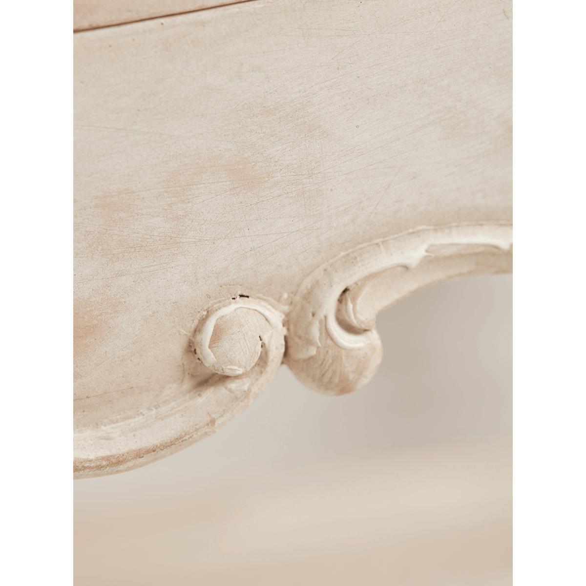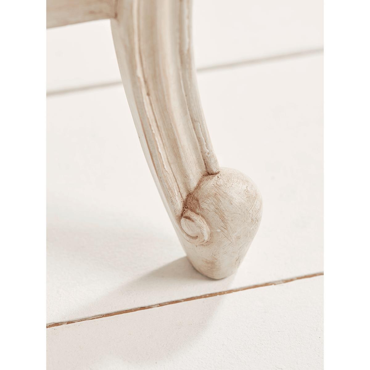 Inspired by French country style and full of the aged charm of a vintage piece, this elegant bedside table is crafted from mahogany with a washed finish for a distinctive look. Two drawers and a lower rattan shelf offer a place to stow bedside accessories whilst the decorative touches featured on each cabriole leg deliver a gentle, romantic touch, just right for the bedroom.