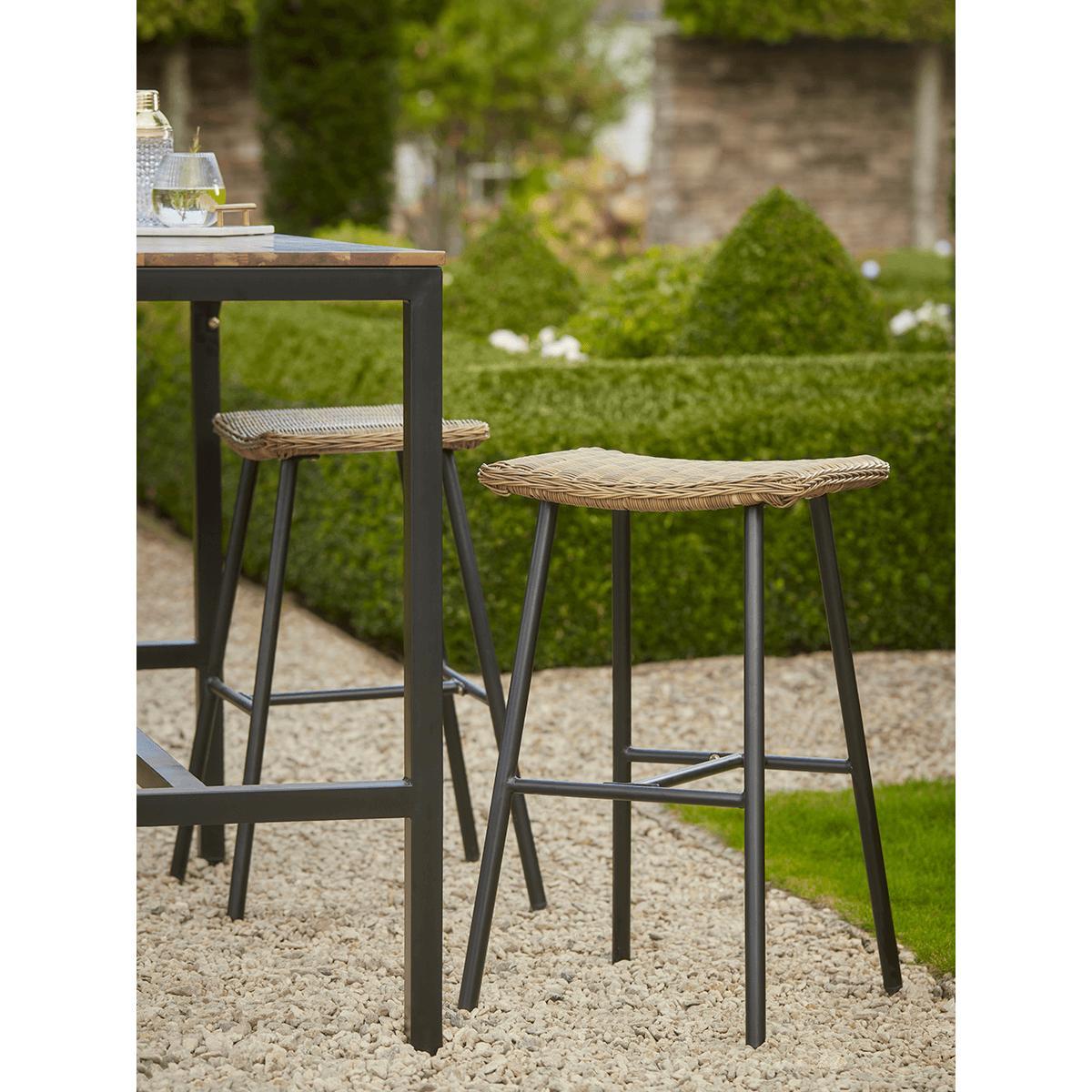 With a simple, but stylish upturned lift to the faux wicker seat, our Alta Curved Bar Stools with their elegant black metal legs are the perfect accompaniment to our. Alta Bar Dining Table. Ideal for creating that holiday at home vibe in your outdoor space, they are a comfortable option for long lazy lunches or the perfect perch for sipping cocktails. Seen here in Natural, the two stool set is also available in. Black.
