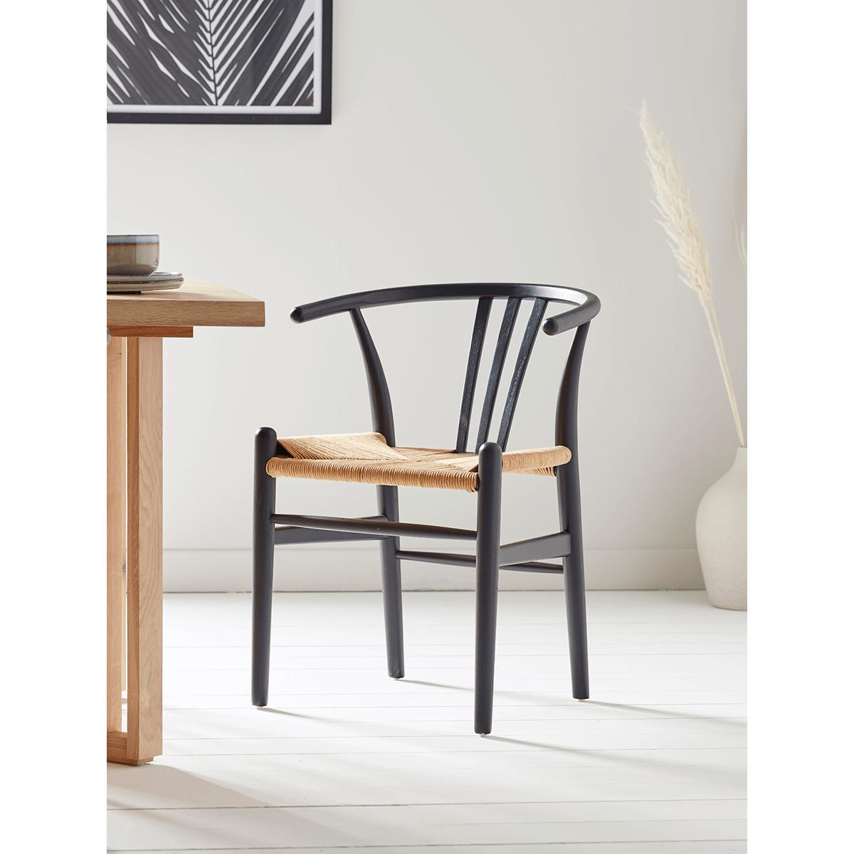 In a contemporary take on a classic design, this dark wood chair with its gentle curves and contrasting woven seat will bring a stylish finishing touch to your dining space. Sold as a pair, weve partnered them with our. Alma dining table.