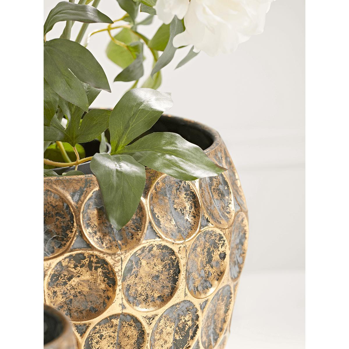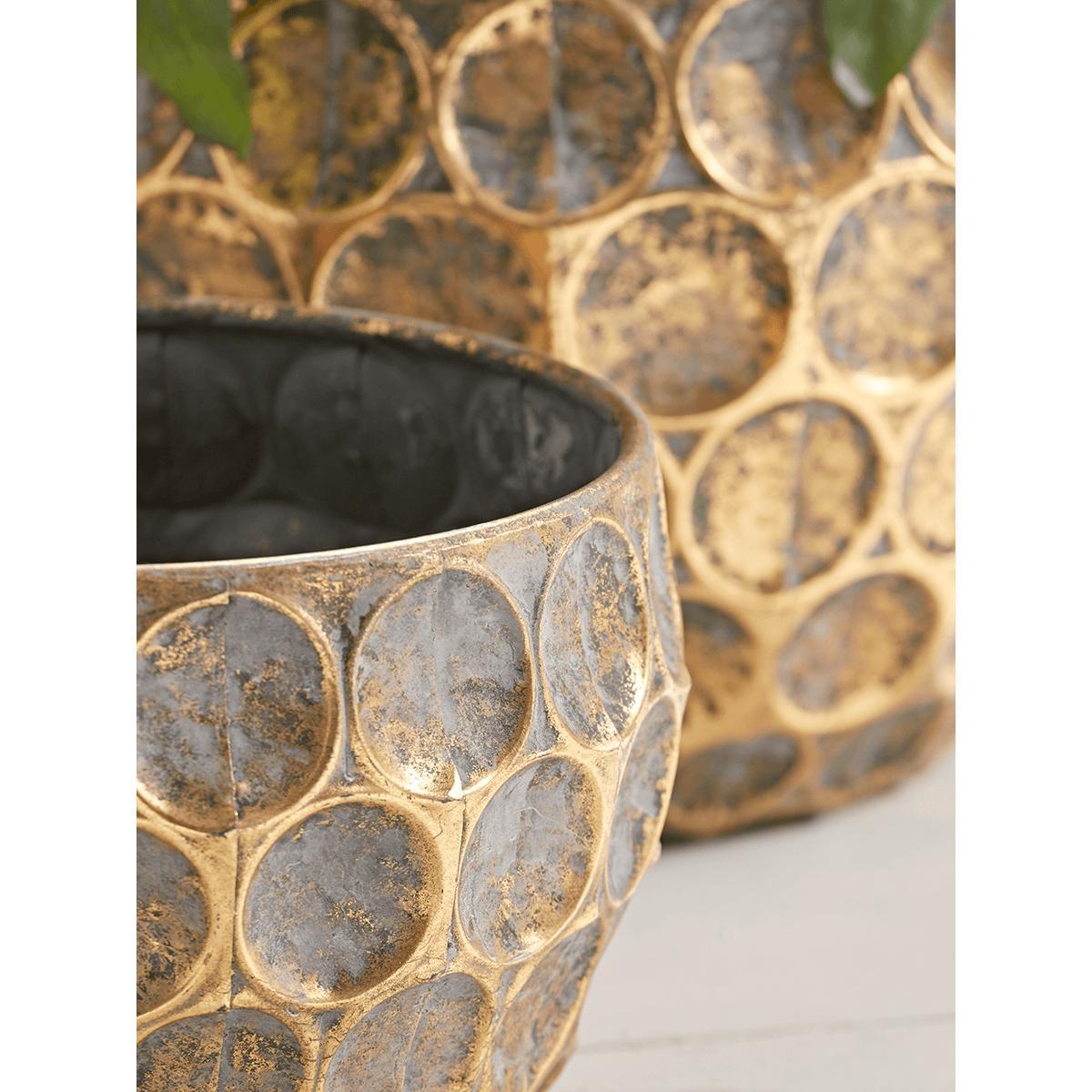 Enhance you indoor greenery, whether fresh or faux, with a little bit of glamour and our set of Two Gilded Planters. With an authentically burnished golden finish and textured surface, these can be positioned together for a strong, chic look, or separately to create a coherent style throughout your home.
